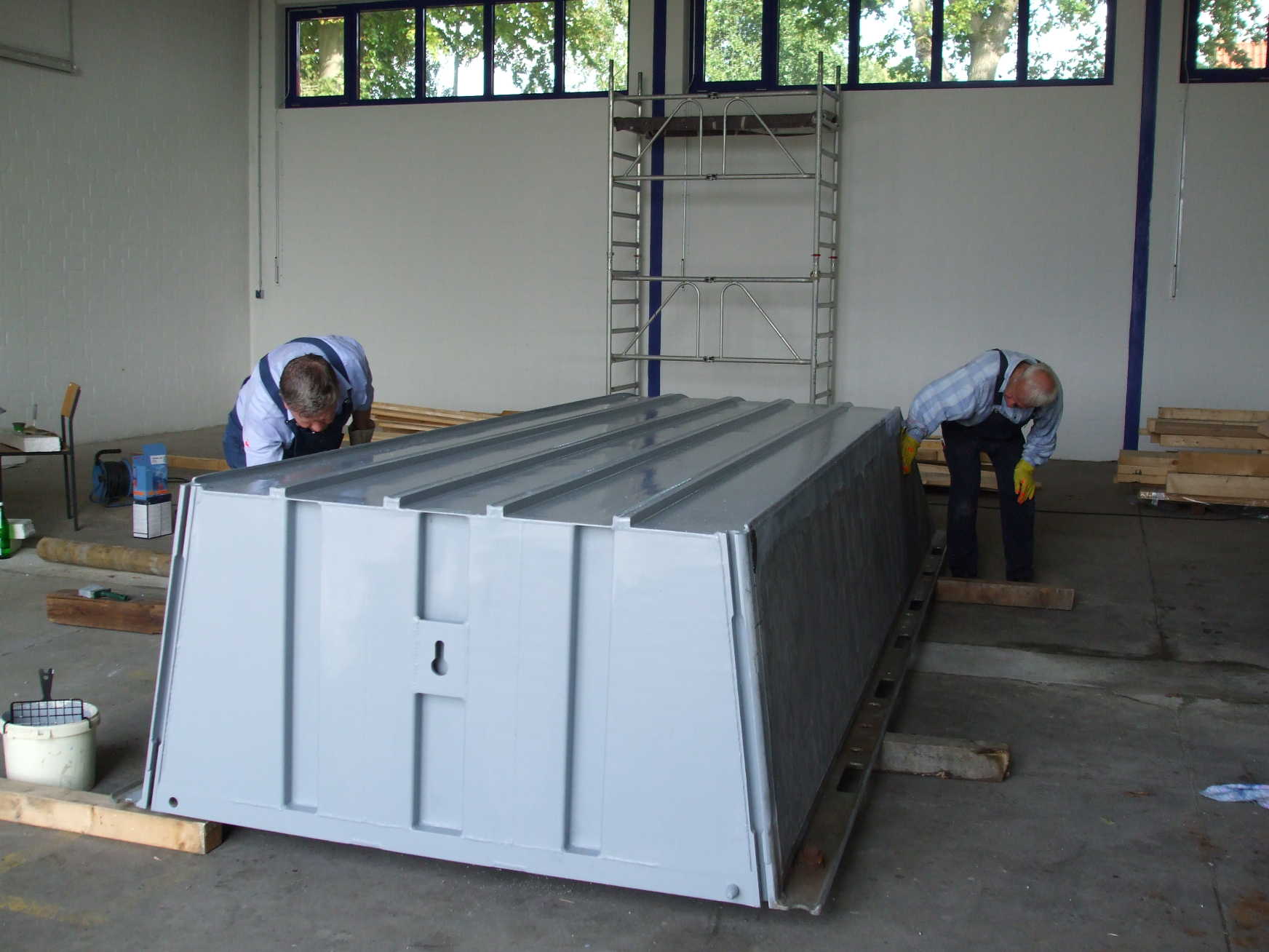 Haupttätigkeit war die Restaurierung des historischen BGS-Pontons. Die Innenseite des Pontons wurde farblos lackiert, danach von außen grau gestrichen.