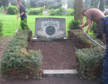 trafen sich am Grab von Otto Lummitzsch um die Grabmalanlage wieder auf Vordermann zu bringen.