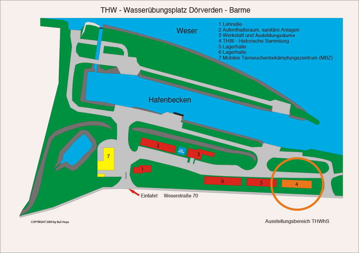 Veranstaltungsort ist die THW-Bundesschule Hoya / THW-Wasserübungsplatz Barme, Weserstraße 70, 27313 Barme, an der B 215 Nienburg – Verden.