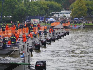 Der Pontonbrückenschlag war dann einer der Höhepunkte des Frankfurter Katastrophenschutztages. Planmäßig um die Mittagszeit und Abend wurde der Main für je 3 Stunden gesperrt und die letzten Brückenteile zur Schwimmbrücke eingefahren. Nach der Fertigstellung der Pontonbrücke nutzten viele Besucher der Veranstaltung die Möglichkeit nun trockenen Fußes über den Main zu kommen.