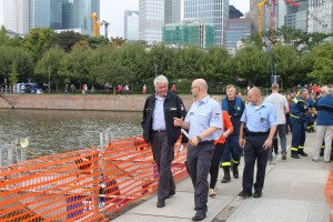 Auch THW-Präsident Albrecht Broemme überzeugte sich vor Ort von der gelungenen Arbeit der vielen THW-Kräfte.