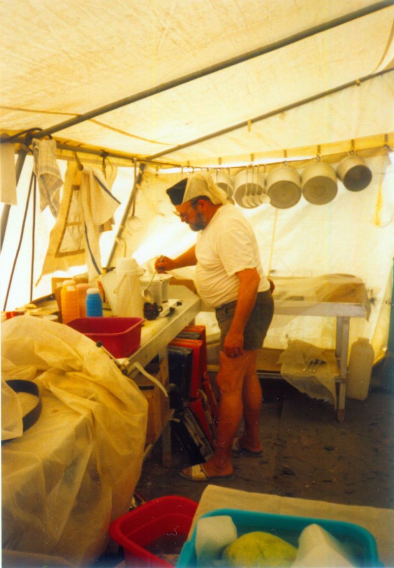 Die Lufttemperatur heute Mittag ist 39°C, im Zelt sind es 42°C. Alle leiden sehr unter der Hitze. Wir haben heute den bisher heißesten Tag. Ein Helfer hat leichte Kreislauf-probleme, klagt über Unwohlsein und fröstelt, hat jedoch kein Fieber. Einige Helfer klagen über leichten Durchfall. Der Arzt verteilt Kohle-Comparetten sodass der Durchfall etwas gemildert wird.