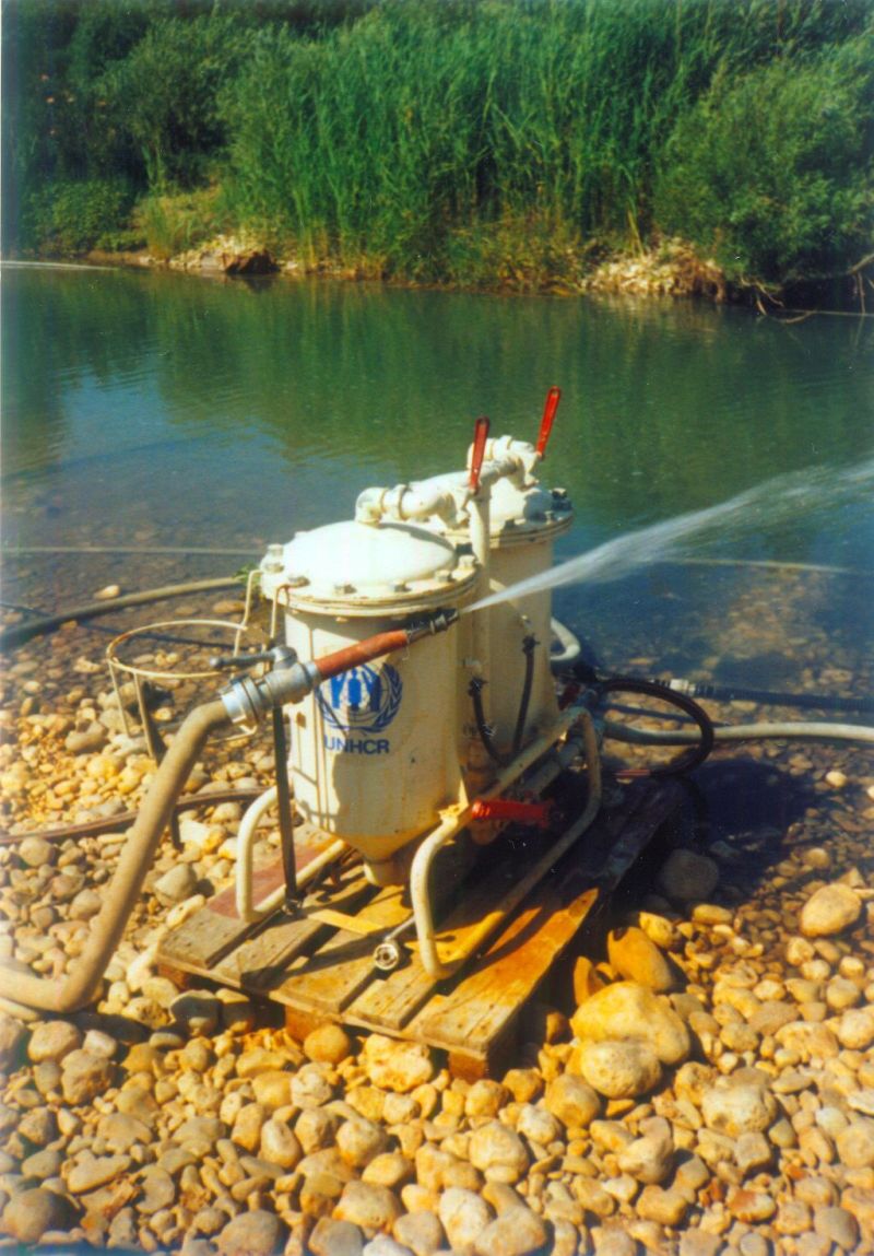 jedoch, dass man das Wasser bis kurz vom Lagereingang pumpen kann. Elektrizität der RITZ-Pumpen (Zwischenbehälter) kann eventuell von einem 217 kVA Notstromaggregat, welches im Lager vorhanden ist, entnommen werden. Der Hochtank ist noch nicht installiert worden. Die Zuleitung muss noch mit mindestens 400 m PE-Rohr, DA 110 verlängert werden, wenn sie bis zum vorgesehenen Hochbehälter reichen soll. Die Verteilung hat noch nicht begonnen. Eine Erkundung vom 24.05. ergab, dass Hochtank und Verteilung Lagerseitig verlegt werden sollte! (ist bisher noch nicht geschehen).