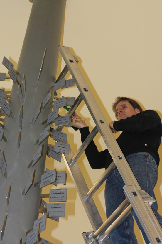 Anschließend wurden die Erinnerungstafeln für die Auslandseinsätze 2013 am Einsatz- und Projektbaum nachgetragen. Insgesamt wurden zwölf neue Tafeln gefertigt und angebracht. Der Projektbaum ist jetzt wieder auf dem aktuellen Stand.