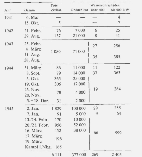 Von 1941 bis 1945 waren in Nürnberg durch Luftangriffe insgesamt 6.111 tote Zivilisten zu beklagen.