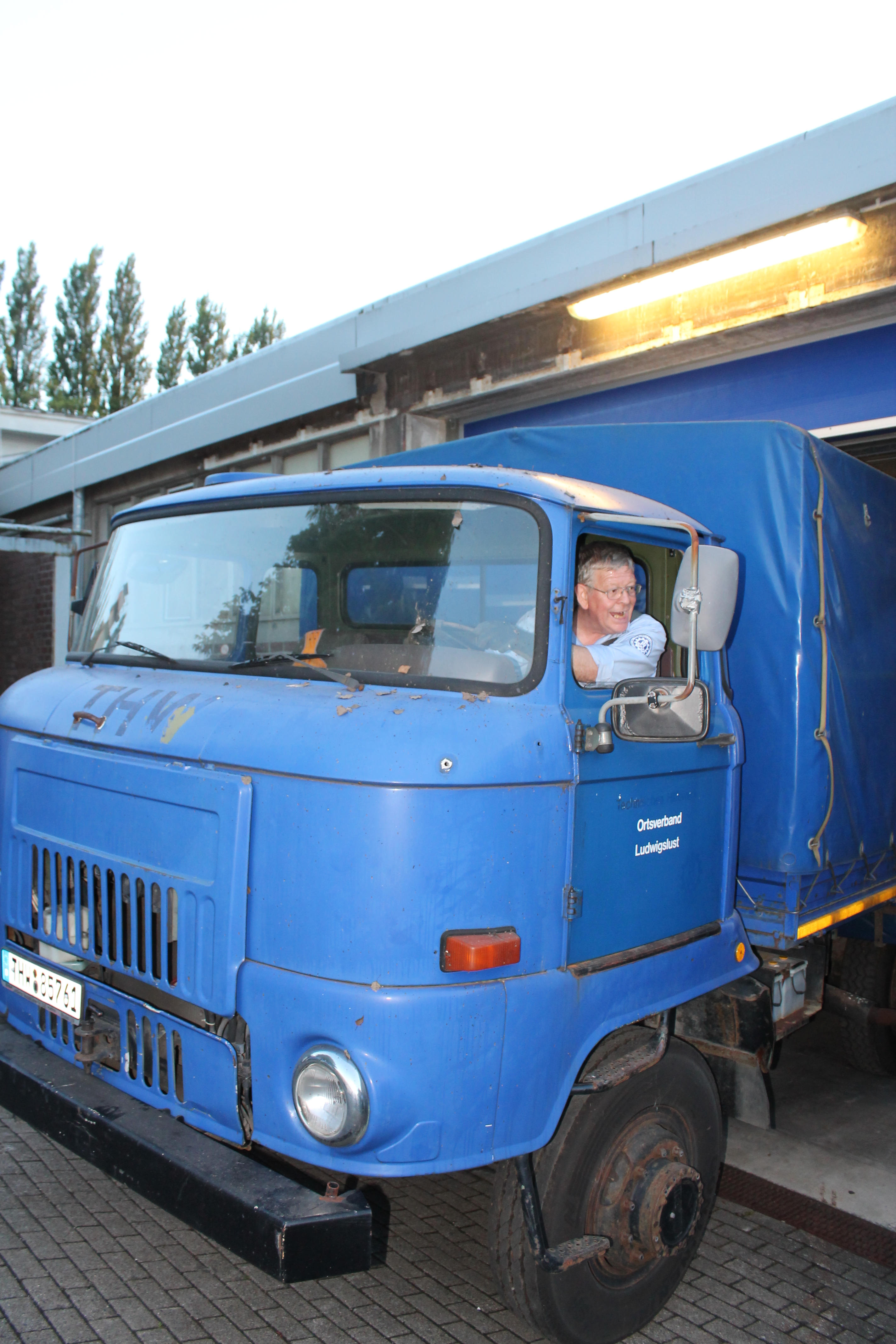 Vom OV Landshut waren Rudi Hattenkofer, Michael Forster und Christoph Payer mit einem MZKW nach Heiligenhaus gefahren. Auf dieses Fahrzeug wurden Metallkisten mit nicht mehr benötigtem Werkzeug und Kfz-Ersatzteilen geladen. Das Werkzeug und die Ersatzteile werden zur Reparatur und Wiederherstellung der historischen Fahrzeuge, die sich bereits am Standort München befinden bzw. die im Laufe der Zeit noch nach München transportiert werden, benötigt. Außerdem wurde noch eine 3-Seiten-Kipp Radladerschaufel auf den MZKW verladen, sie ist ebenfalls für den Standort München bestimmt.