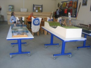 Die von Rudi Heppe und Winfried Plate fertiggestellten Untergestelle für die Tische, auf denen die verschiedenen Modelle stehen, wurden an die Tische montiert und die Modelle bekamen wieder ihren alten Platz.