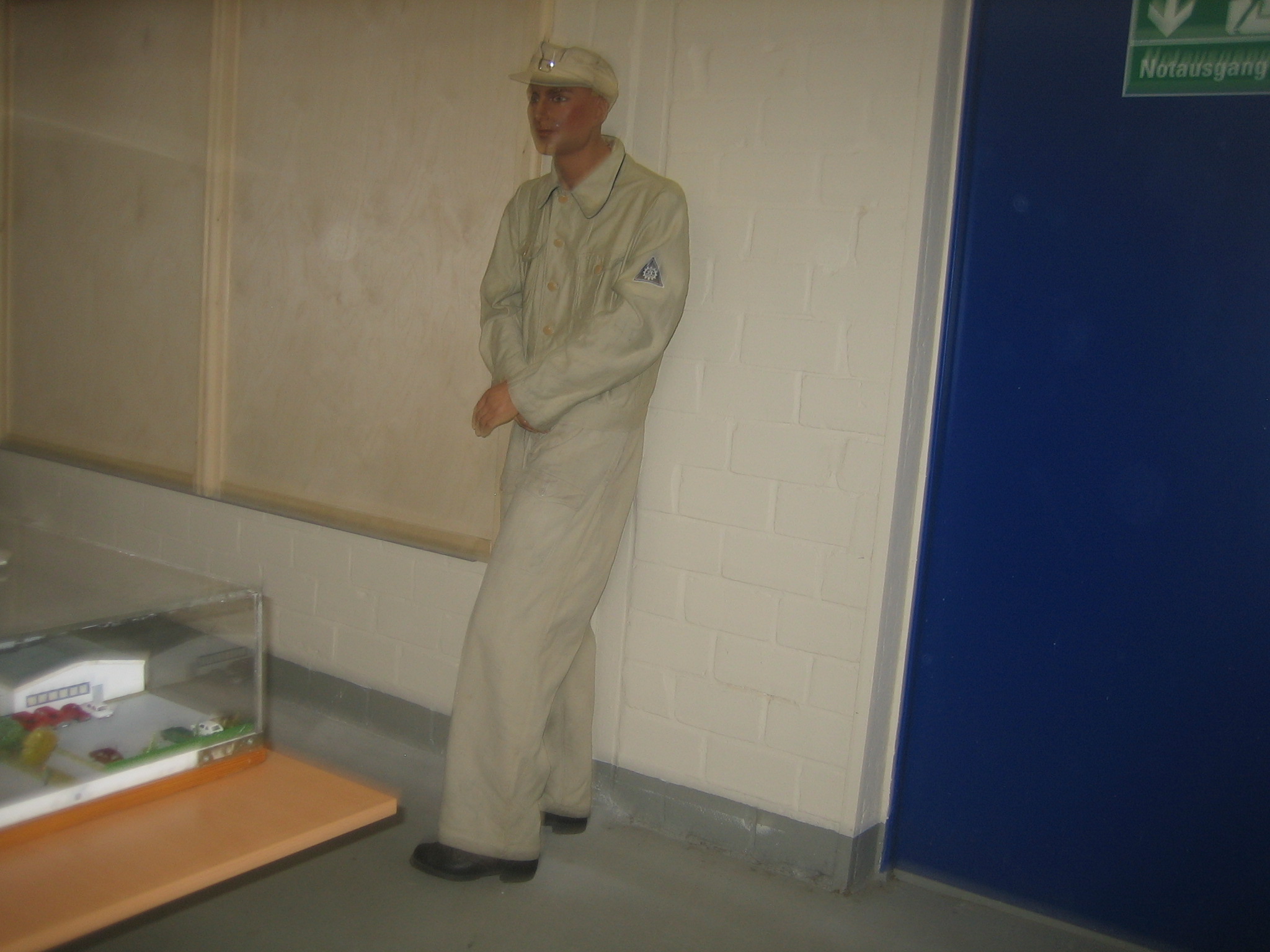 Die Puppe, die aus Neuhausen nach Hoya transportiert worden ist, hat in ihrer weißen Uniform ihren Platz neben der Wand gefunden. Arbeitstreffen in Hoya vom 04. bis 07.09.2014 041