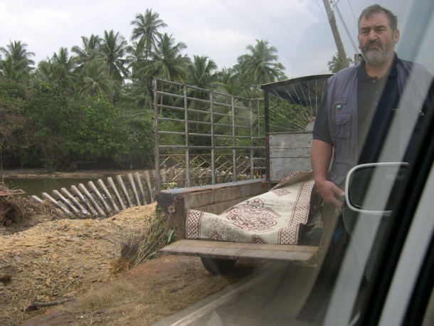 Werner und ich fahren mit dem Taxi weiter Richtung Süden nach Galle. Auf der Fahrt nach Süden nehmen mit jedem Kilometer die Schäden auf Grund des Tsunamis zu. Vor uns fahren Fahrzeuge, Pickups, zuerst sehen wir nicht, was sie geladen haben, dann kommt die Erkenntnis: Leichen, notdürftig mit Matten abgedeckt, wir sind geschockt.