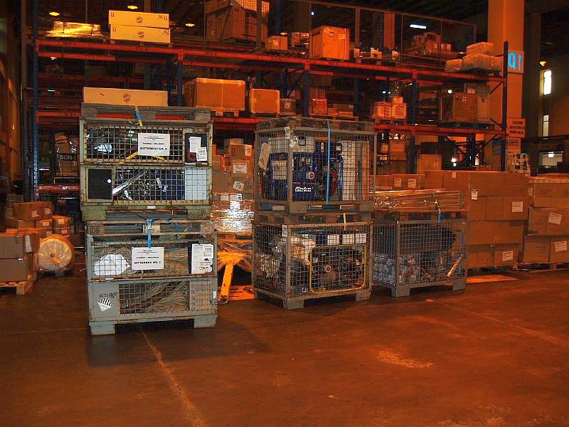 Nachdem nun bis 16:30 Uhr immer noch kein Material aus dem Zoll gekommen war, machte ich mich selbst auf die Suche nach der Ausrüstung. Ohne Schwierigkeiten hatte ich Kontakt zu den Angestellten im Cargo Bereich aufgebaut. Nach einem kurzen Gespräch konnte ich mich frei im ganzen Cargo Bereich bewegen. Auf dem Freigelände fand ich mehrere Flugzeugpaletten mit unserem Material. Nun konnte die Entzollung beginnen. Die erforderlichen Papiere wie Airway-Bill und Ladeliste befanden sich schon bei den verantwortlichen Zollbeamten. Währenddessen organisierte ich den Transport des Materials in den Hallenbereich bzw. sprach mit dem Verladepersonal das weitere Vorgehen ab.