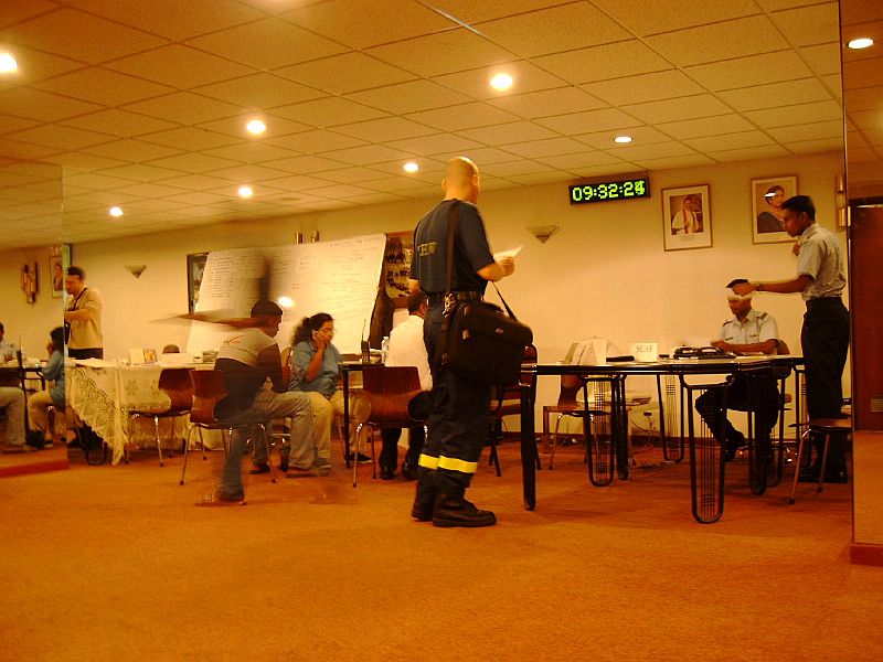 Bereits um 08:40 Uhr machten wir uns auf den Weg zum Flughafen Colombo, um dort nach den verlorenen Gepäckstücken Ausschau zu halten. Nach mehr als einer Stunde Fahrt vom Hotel zum Flughafen konnten dort drei unterschiedliche Aufbewahrungsstellen in Augenschein genommen werden. Nachdem das Gepäck nicht aufgefunden werden konnte, wurde hier Rücksprache mit Bonn gehalten. Klaus Magdiziak (S 4 LuK THW-Leitung Bonn) will sich der Sache annehmen, ist jedoch im Moment bei der Geschäftsübergabe und will sich später wieder melden. Das Auffinden der verlorenen Gepäckstücke wird immer komplizierter, da weder die Flugnummer noch die Nummer der Airwaybill bekannt sind.