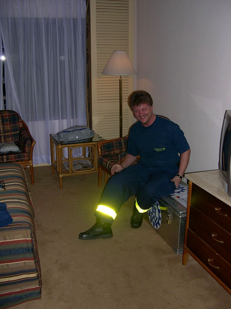 Abendessen gegen 20:45 Uhr. Hier im Hotel haben wir Walter Jäggli (CH) getroffen. Ihn kenne ich schon mehrere Jahre. Er wurde durch das THW als UNDAC Mitglied in Deutschland ausgebildet.