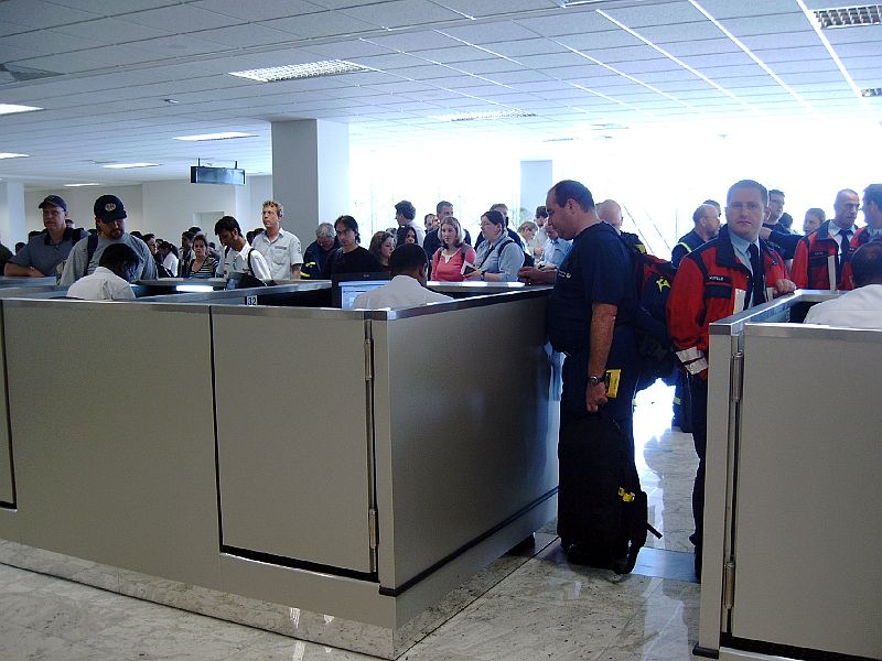Nach Auskunft des Flughafens soll nun doch noch Material für das THW angekommen sein. Somit wieder in einer Stunde raus zum Flughafen. Mittlerweile kennt uns nun wirklich schon jeder. Gegen 17:15 Uhr waren alle Formalitäten erledigt. Man muss hier nur in drei verschiedene Büros, an zwei unterschiedliche Stellen beim Zoll, mindestens vier bis sechs Fotokopien anfertigen lassen, darauf dann nicht unter zehn Unterschriften einsammeln und letztendlich noch bei sechs weiteren Büros vorbeigehen, um zu fragen, ob auch bestimmt nichts vergessen worden ist.