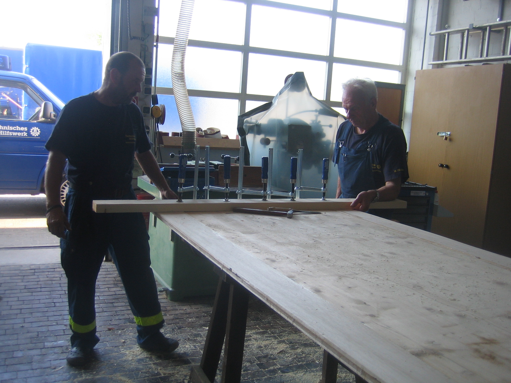 Der schon längere Zeit geplante Tisch für die Gästehalle wurde in Angriff genommen. Der Tisch wird in Form eines Pontons erstellt.