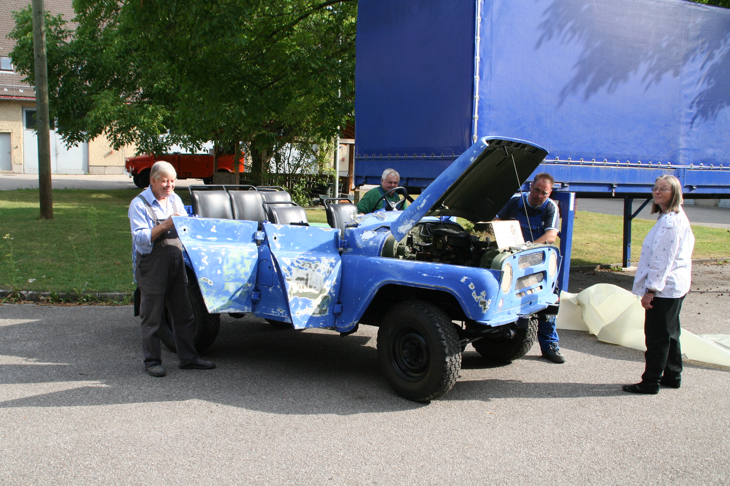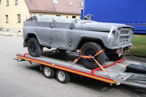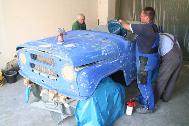 Der UAZ wurde am 23.07.2015 von Fürstenfeldbruck zum Ortsverband Ergolding überführt, wo er ebenfalls zum Lackieren vorbereitet wurde.