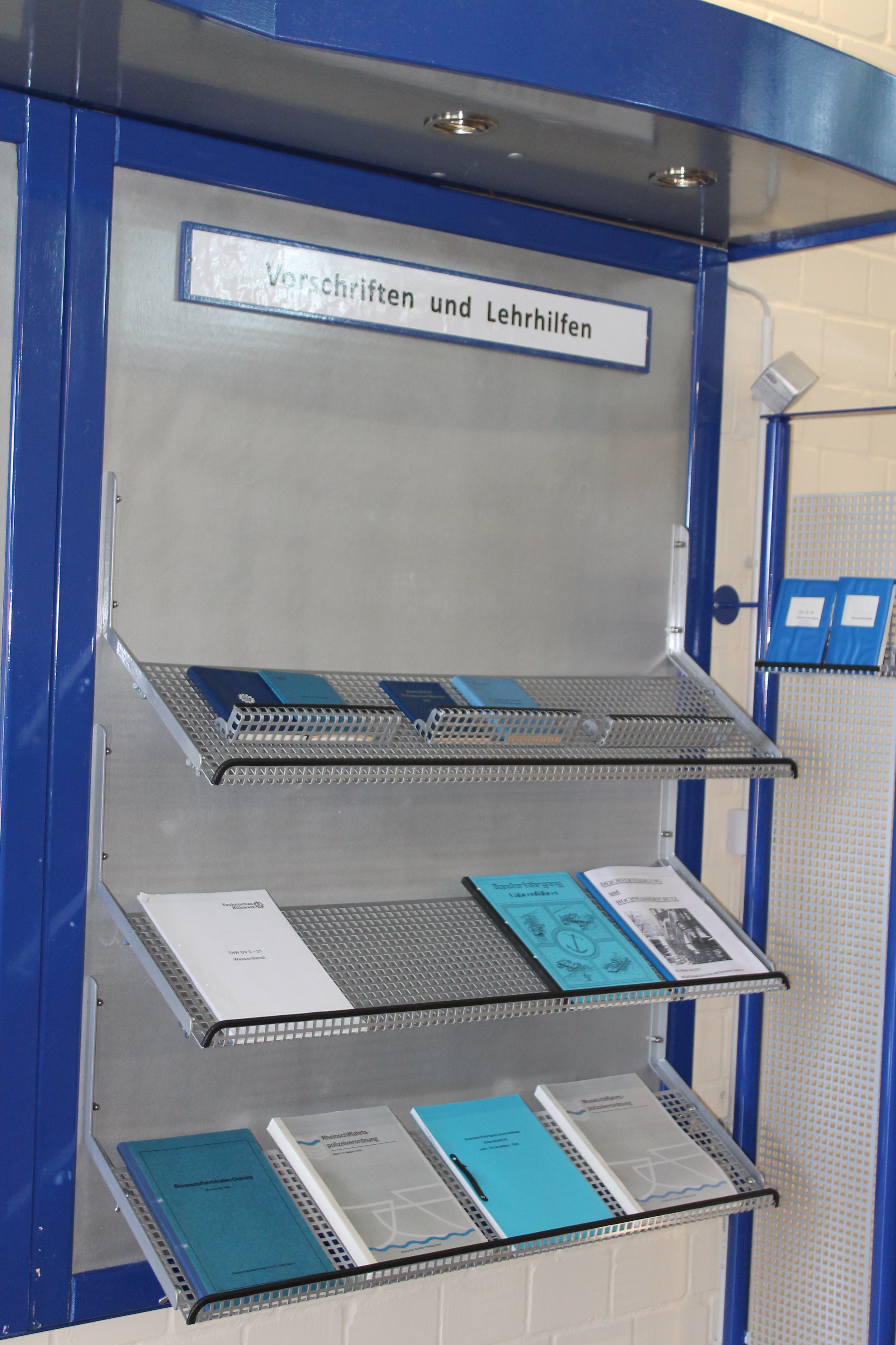 Auf die Tafel für die Vorschriften und Lernhilfen wurden verschieden große Fächer angebracht, in denen Vorschriften und Unterrichtsmaterialien ausgestellt werden sollen.