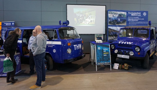 Vom 17. bis 20. März hat Europas größte Oldtimer-Messe, die Retro Classics, in Stuttgart gastiert. Unter den liebevoll gepflegten Nutzfahrzeug-Veteranen in Halle 8 gab es auch wieder automobile Schätze aus den Depots der THW-historischen Sammlung (THWhS) zu bestaunen: einen Büssing B2000, der als Fernsprechwagen im Dienste des ehemaligen Luftschutzhilfsdienstes (LSHD) stand, ein Maico-Meldekrad, einen UAZ 469B Geländewagen, den das THW nach der Wiedervereinigung von der NVA übernommen hatte, und einen VW T2 Mannschaftstransporter.