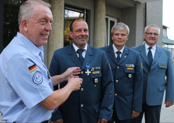 Vom Beauftragten der THWhS für Niedersachsen Rudi Heppe bekam er außerdem als Dank für seine Arbeit eine Ehrenurkunde. Über den Überraschungsbesuch seines Ortsbeauftragten Stefan Heinz war Dietmar Schrötter besonders erfreut.