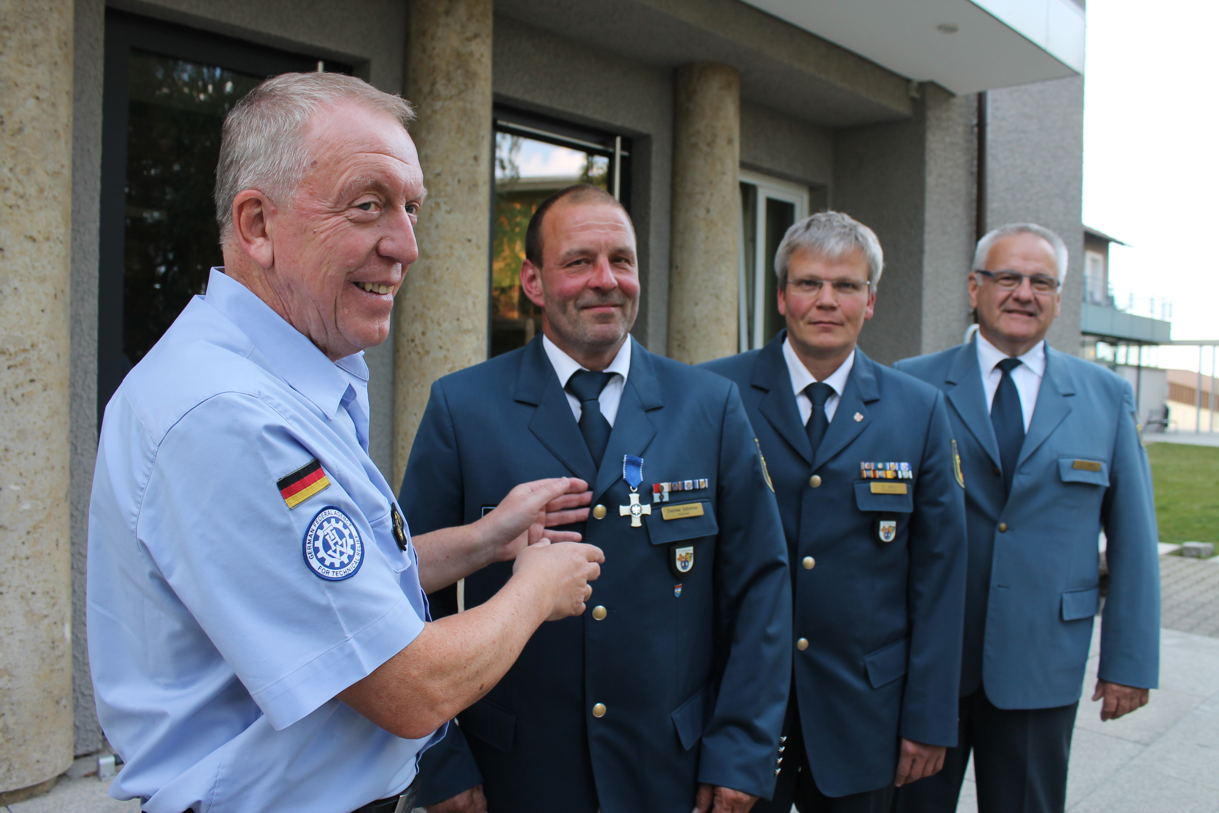 Nach der Begrüßung überreichte Harald Müller das Ehrenzeichen in Silber an Dietmar Schrötter für sein großes Engagement für die THWhS. Mit der Überreichung des Ehrenzeichens wurde er völlig überrascht.