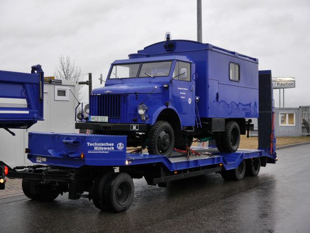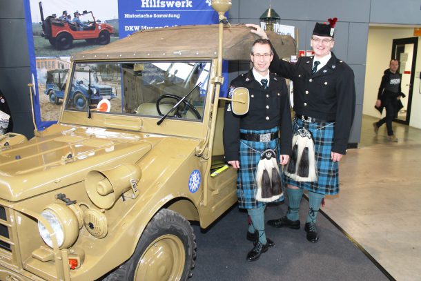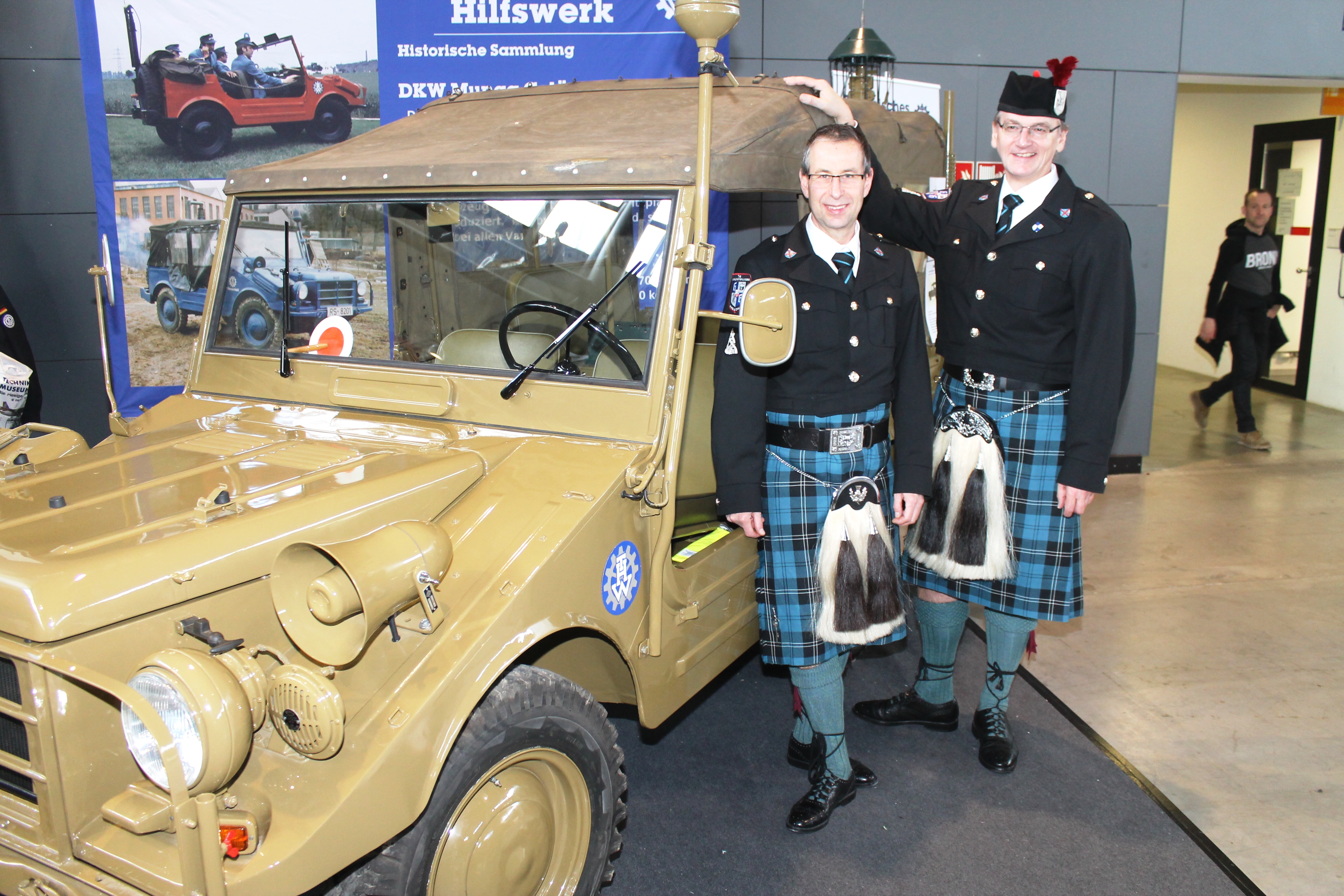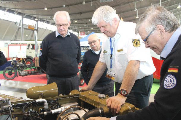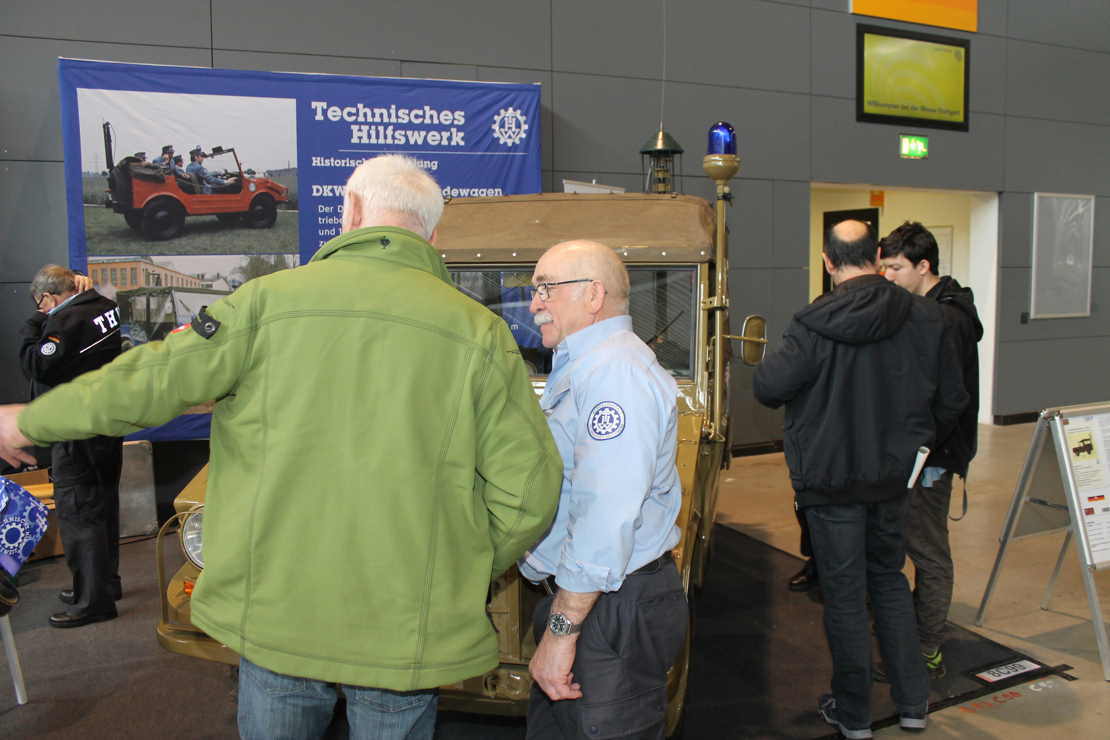 Präsident Broemme nahm sich die Zeit und schaute sich alles genau an, angefangen vom Munga, über die Feldküche und den MKW aus Niedersachsen bis hin zu den von Mercedes gesponserten und von Uwe Keller mitgebrachten Warnwesten, Warn-Dreiecken und Verbandskästen.