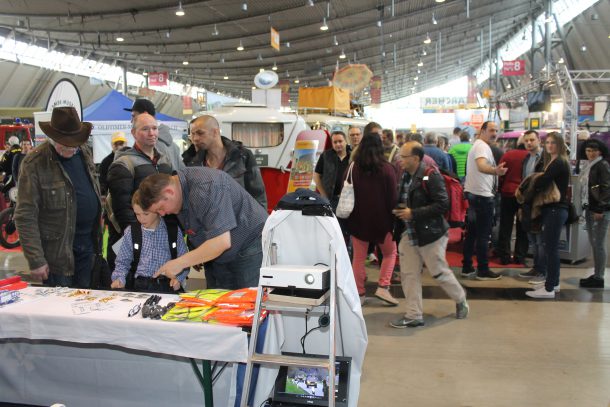 Bevor wir unsere Fahrzeuge und den Stand in der Halle aufbauen konnten, musste das uns zur Verfügung stehende Areal mit Teppichboden ausgelegt werden, das war von der Messeleitung so gewünscht.