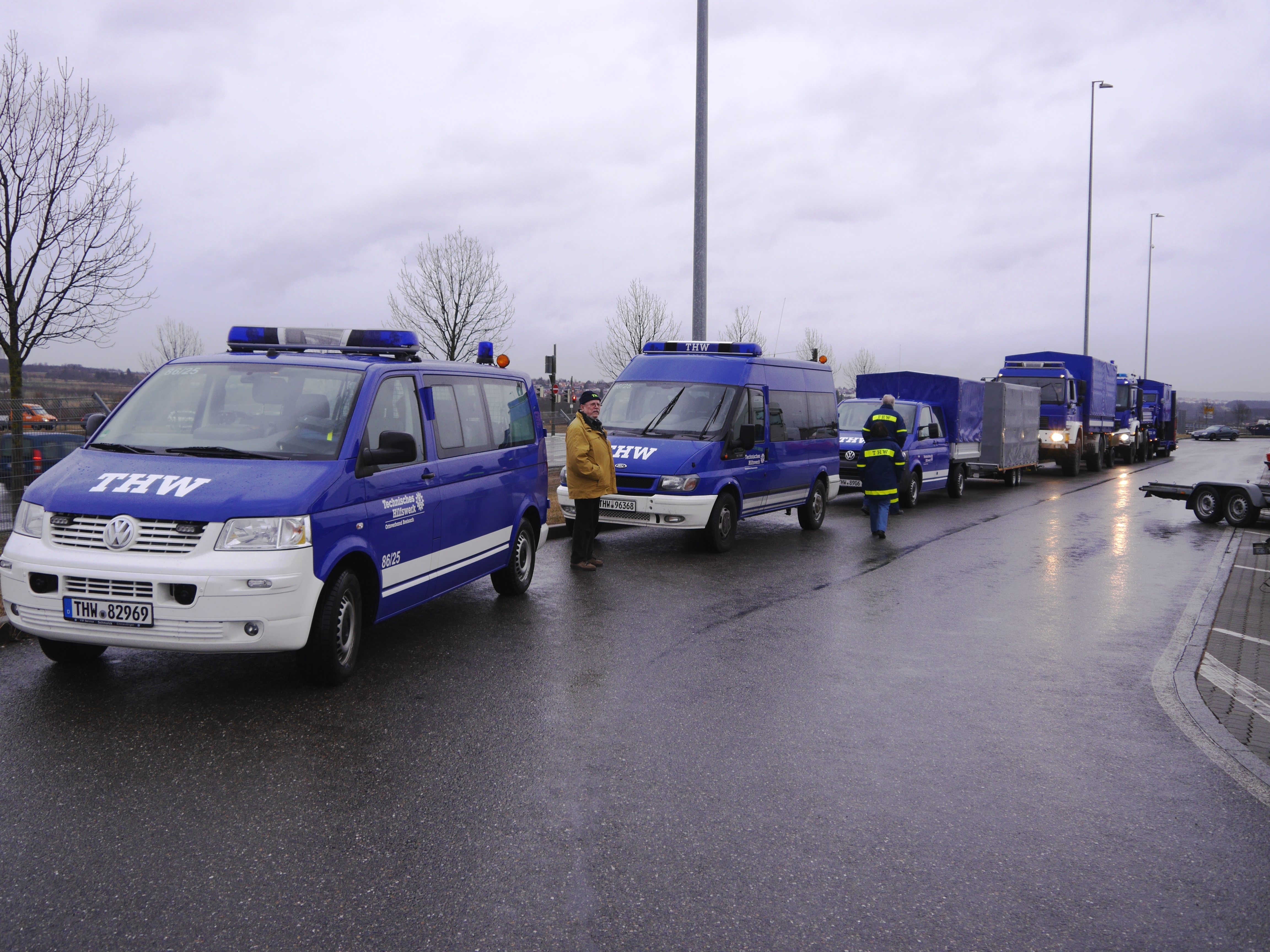 Die Fahrt zu den Messehallen musste leider bei Regen stattfinden, war aber mit den vielen THW-Fahrzeugen trotzdem aufregend.