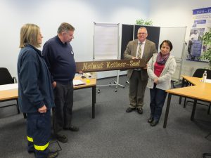Anschließend bekam Helmut Kellner das von Rudi Heppe hergestellte Brett „Helmut Kellner-Saal“ überreicht, worüber er sich sehr gefreut hat.