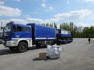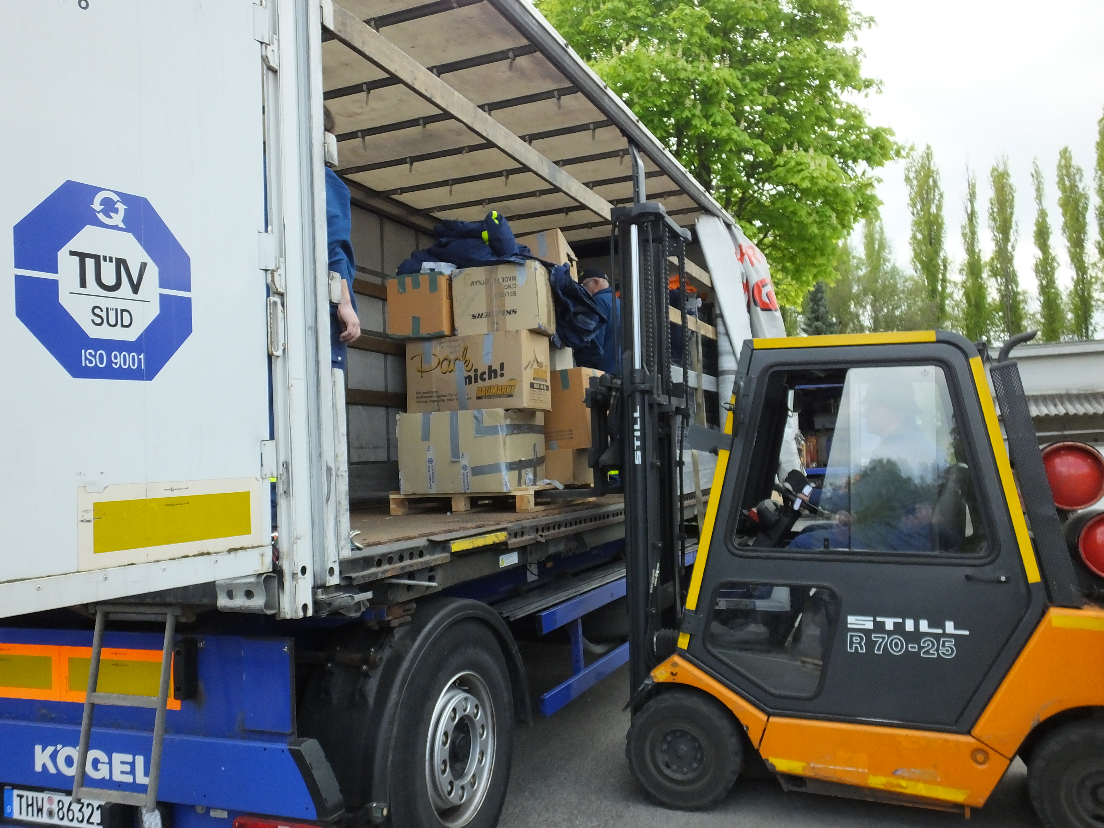 Vom Ortsverband Germersheim brachte Richard Manger einen LKW mit Anhänger mit, der ebenfalls voll mit THW-Material beladen war und das natürlich auch abgeladen werden musste.