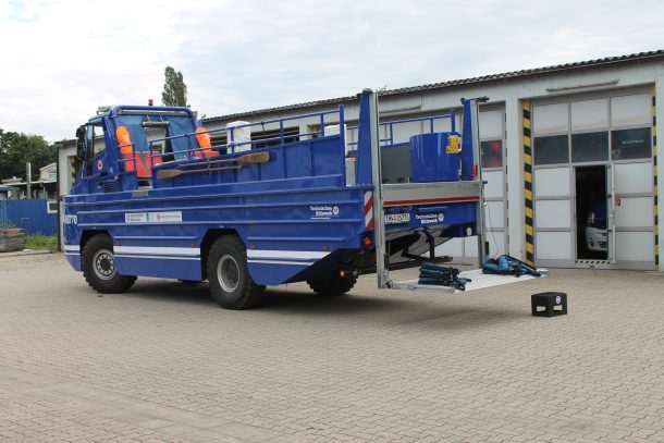 Am Samstagabend hatten wir die Möglichkeit, den Ortsverband Germersheim zu besuchen. Hier war natürlich die neueste Errungenschaft des OV Germersheim, das Amphibienfahrzeug, anzuschauen.