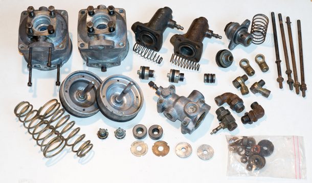 Scheinwerfer, Radkasten, Lampen, Verblendungsteile und Lichtmaschine wurden auseinandergebaut und gesäubert. Die Teile wurden sandgestrahlt und grundiert.