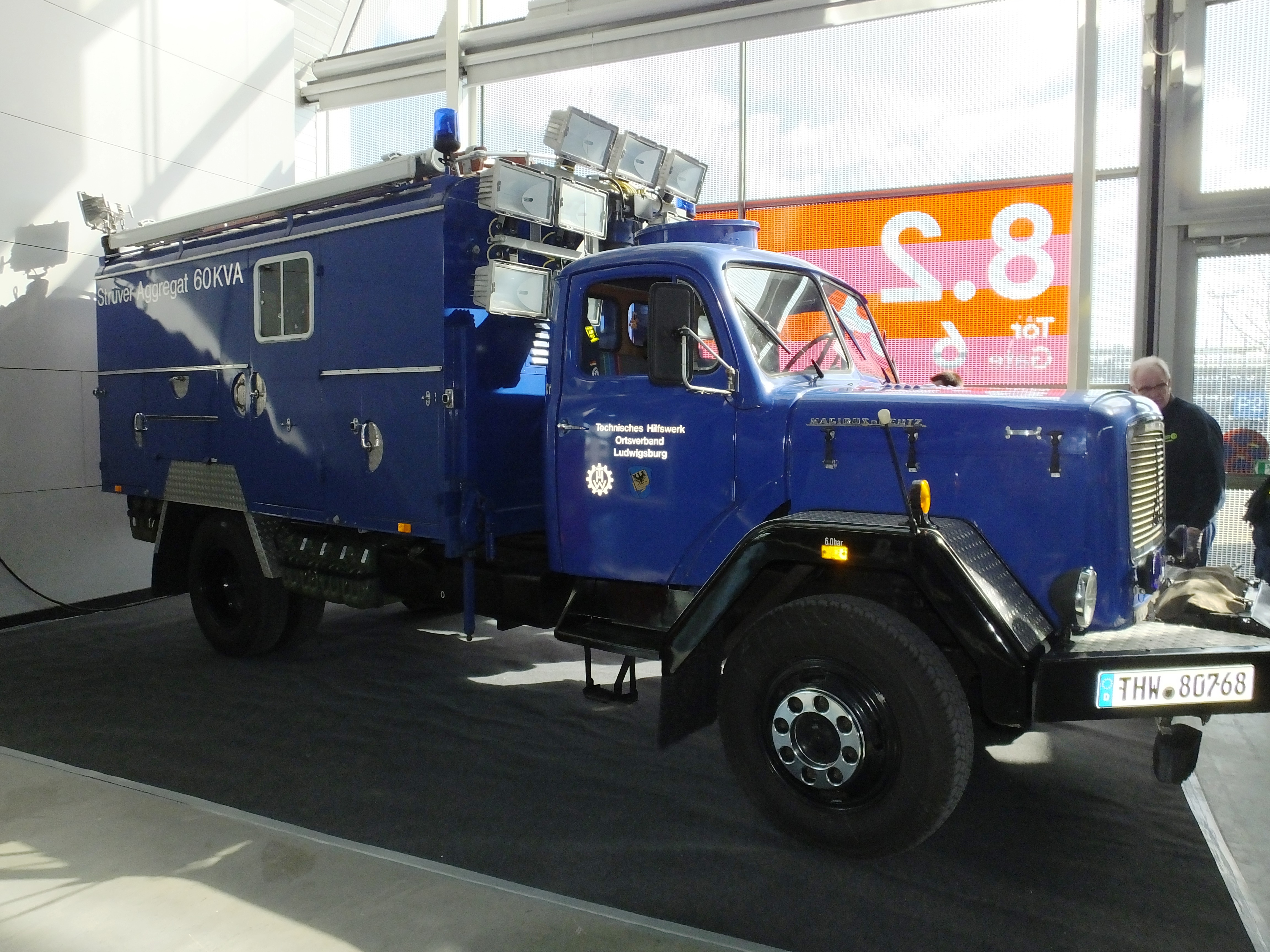 Vom 22. bis 25. März 2018 fand in Stuttgart die alljährliche RetroClassic Messe statt. Ausgestellt haben wir in diesem Jahr einen blauen Beleuchtungswagen Magirus-Deutz Mercur 120 A-L, den uns der Helferverein Ludwigsburg zur Verfügung gestellt hat.