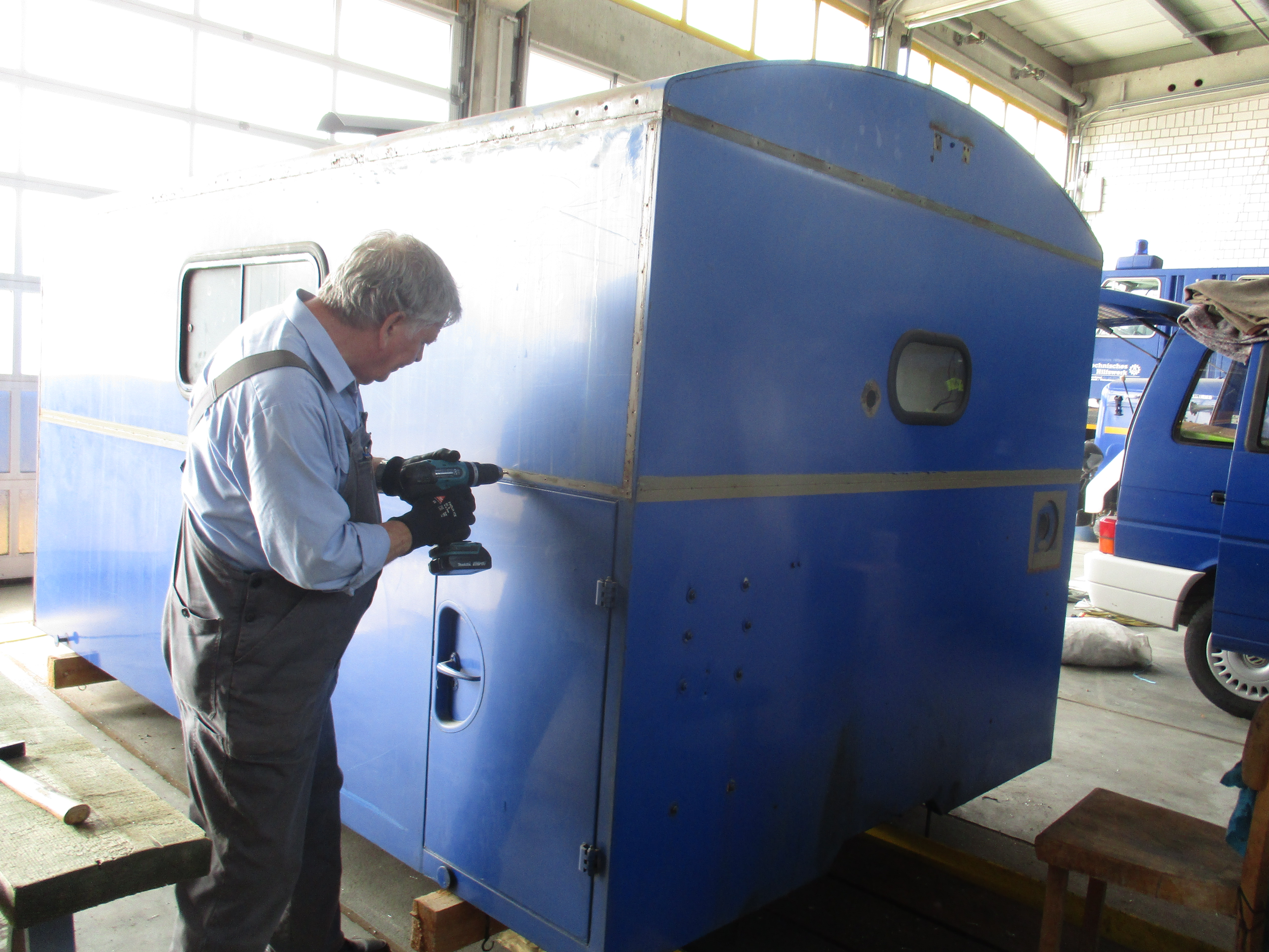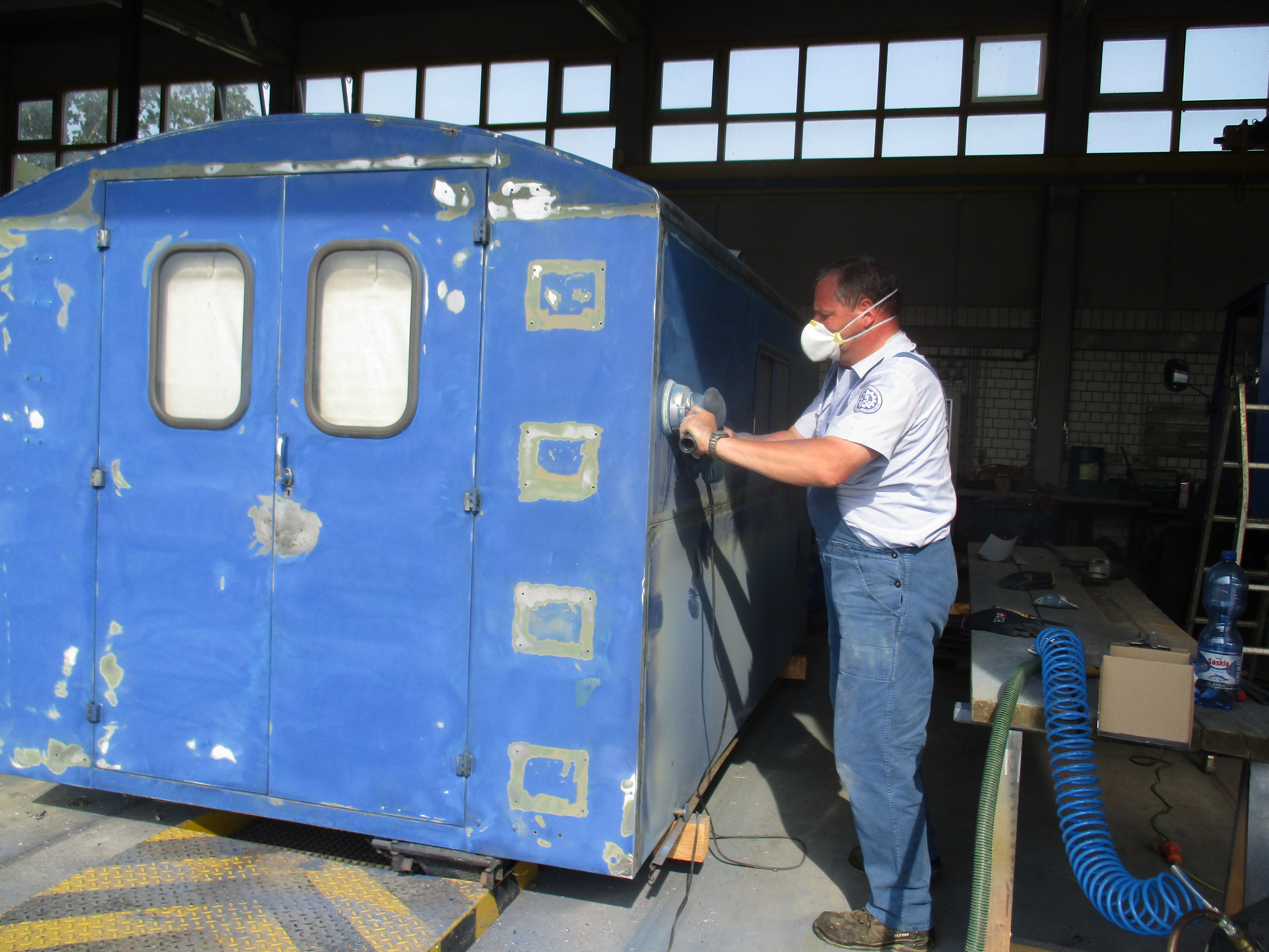 • der Kofferaufbau wurde geschliffen, so dass er beim nächsten Arbeitstreffen grundiert werden kann,