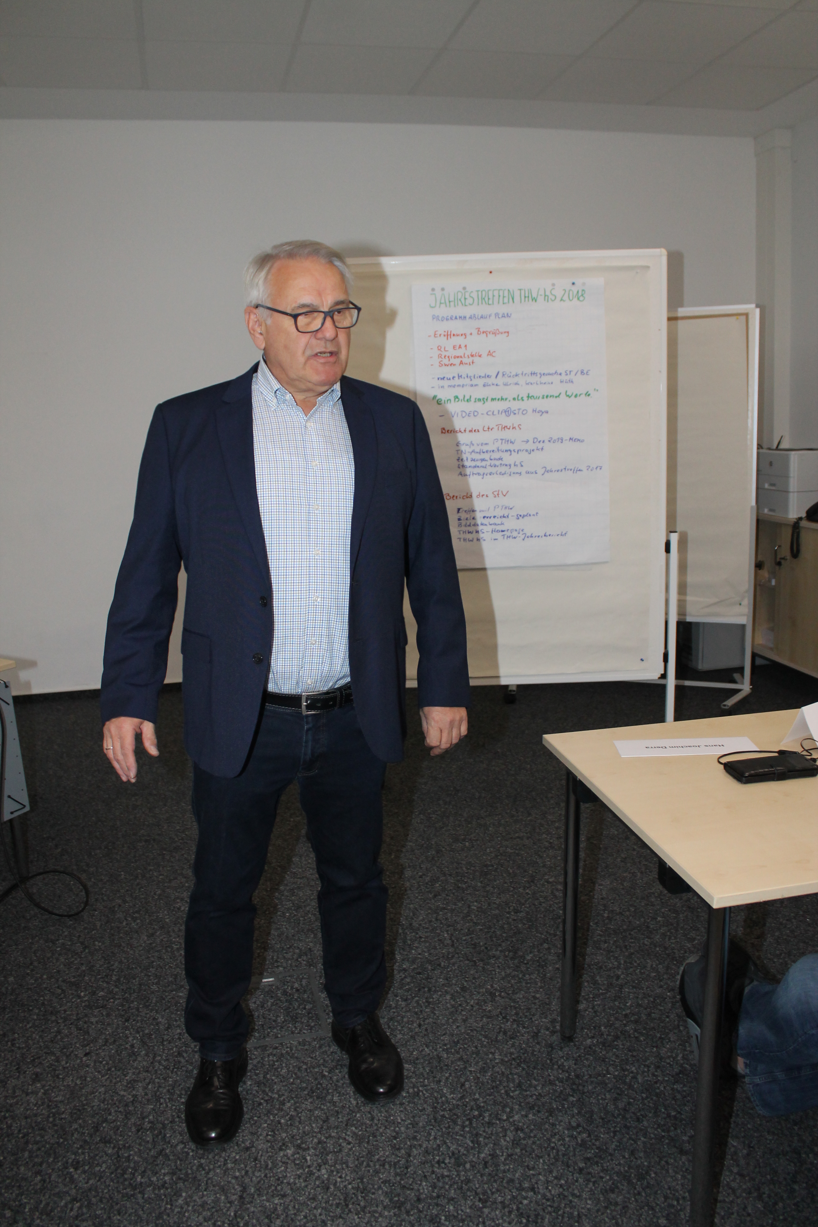 Begonnen hat das Jahrestreffen an der Akademie für Krisenmanagement, Notfallplanung und Zivilschutz (AKNZ) in Ahrweiler, an dem 35 THWhS-Mitglieder teilnahmen, am 26. Oktober 2018 um 16.00 Uhr mit der Begrüßung durch den Leiter der THWhS, Hans-Joachim Derra. Der neue Referatsleiter EA 1 der THW-Leitung, Herr Hefner, der für die Belange der THWhS zuständig ist, war ebenfalls anwesend und hat die Anwesenden begrüßt.