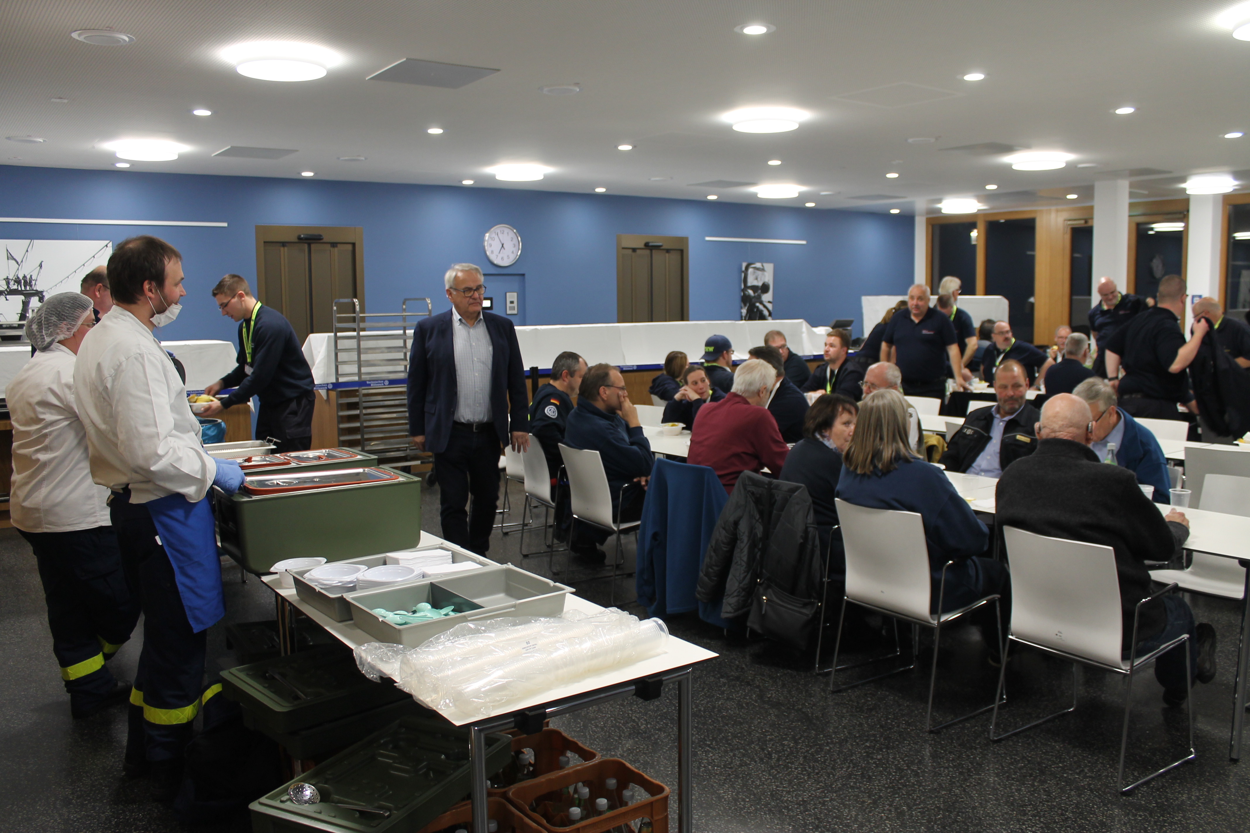 An Wochenenden findet an der AKNZ in Ahrweiler leider keine Verpflegung statt, wir hätten deshalb einen Caterer beauftragen müssen. Wir hatten aber das große Glück, dass die Geschäftsstelle Mönchen-Gladbach an diesem Wochenende mit ca. 80 Helfern eine Übung durchführte und, nachdem wir dort nachgefragt haben, die Verpflegung auch für uns übernommen hat. Dafür nochmals ganz herzlichen Dank!