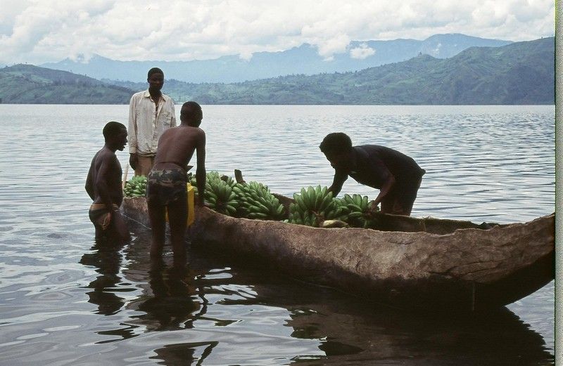 Lebensmittel, wie hier Bananen, wurden mit Einbäumen über den Kivusee transportiert