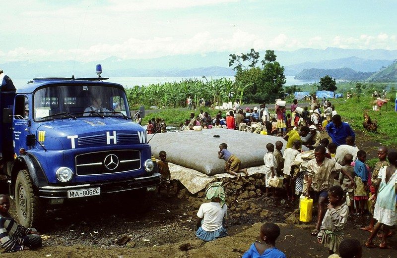 Am Kivusee produzierte das THW mit seinen leistungsfähigen Trinkwasseraufbereitungsanlagen täglich bis zu 2 Millionen Liter sauberes Trinkwasser. Eigene LKWs mit Wasserblasen und Tankfahrzeuge der internationalen Hilfsorganisationen wurden am eigens erbauten Wasserturm, oberhalb des Hafens in Goma, mit sauberem Trinkwasser befüllt. Über die mit erkalteter Lava des Vulkans Nyiragongo bedeckten Straßen ging es dann auf verschiedenen Routen zu den Menschen in die Flüchtlingslager rund um Goma. Nach Erhebungen des UNHCR trug die regelmäßige Trinkwasserver-sorgung zu einem signifikanten Rückgang der täglichen Todesfälle bei. Ende Juli 1994 starben fast 7000 Menschen täglich in den Flüchtlingslagern.