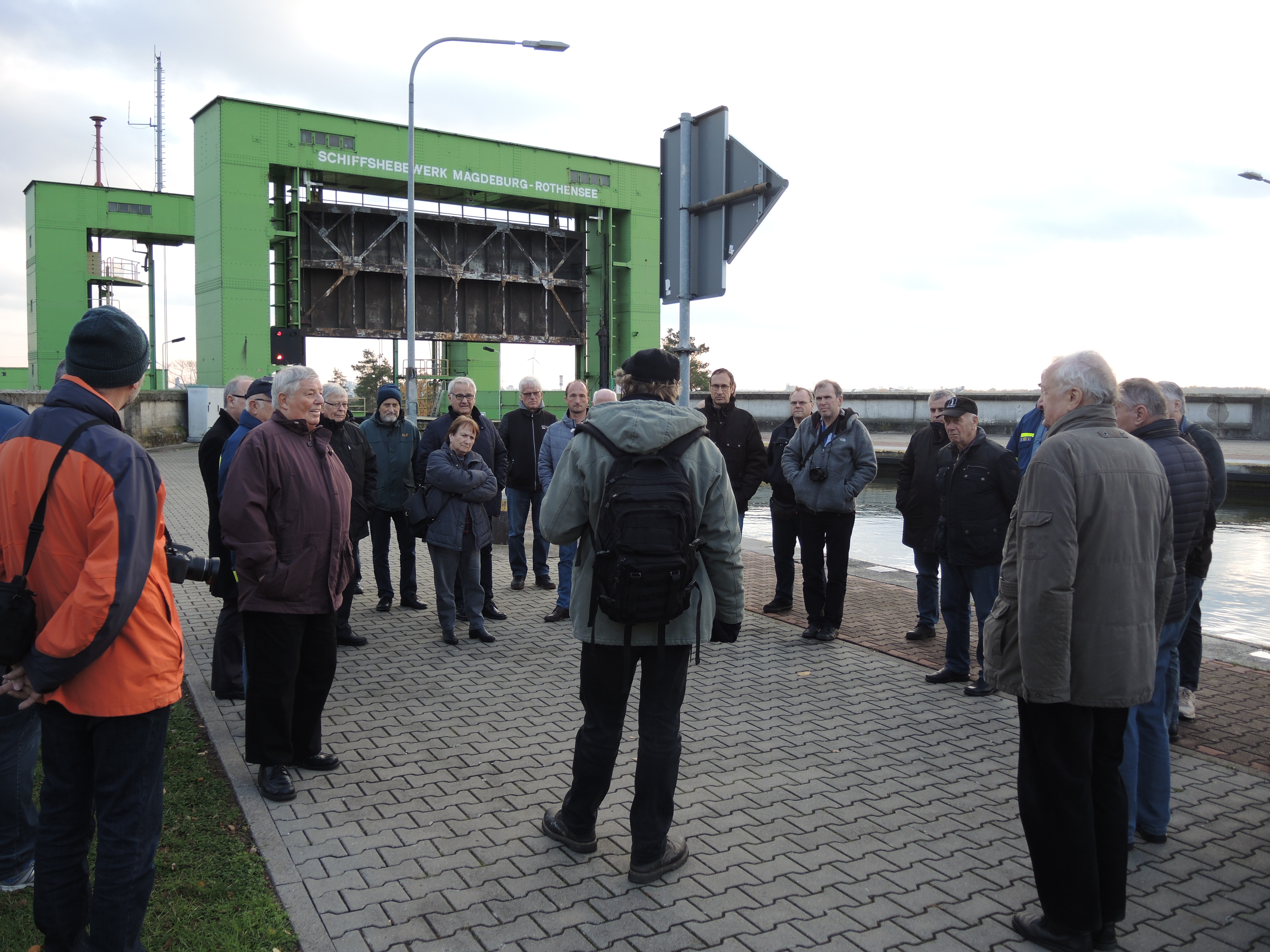 Am Samstagnachmittag fand, wie bei jedem Jahrestreffen, ein Ausflug statt. Unser Ziel war das Wasserstraßenkreuz Magdeburg einschließlich Schiffshebewerk. Das Tourismusbüro hatte uns einen Führer geschickt, der die Arbeit an diesem Hebewerk sehr gut und sehr launig erklärt hat, leider kam während der gesamten Zeit kein Schiff vorbei, so konnten wir nicht sehen, wie das ganze funktioniert.