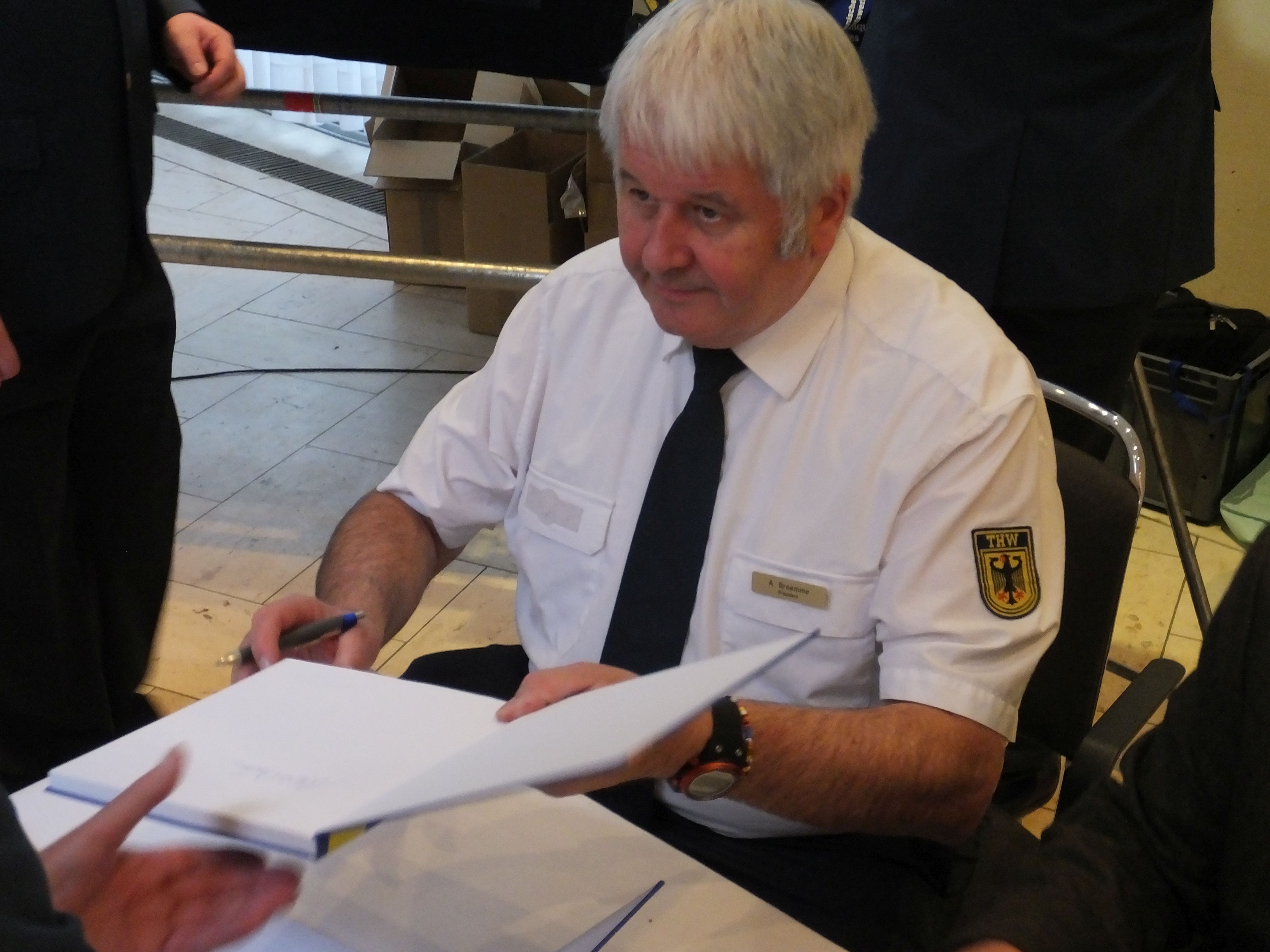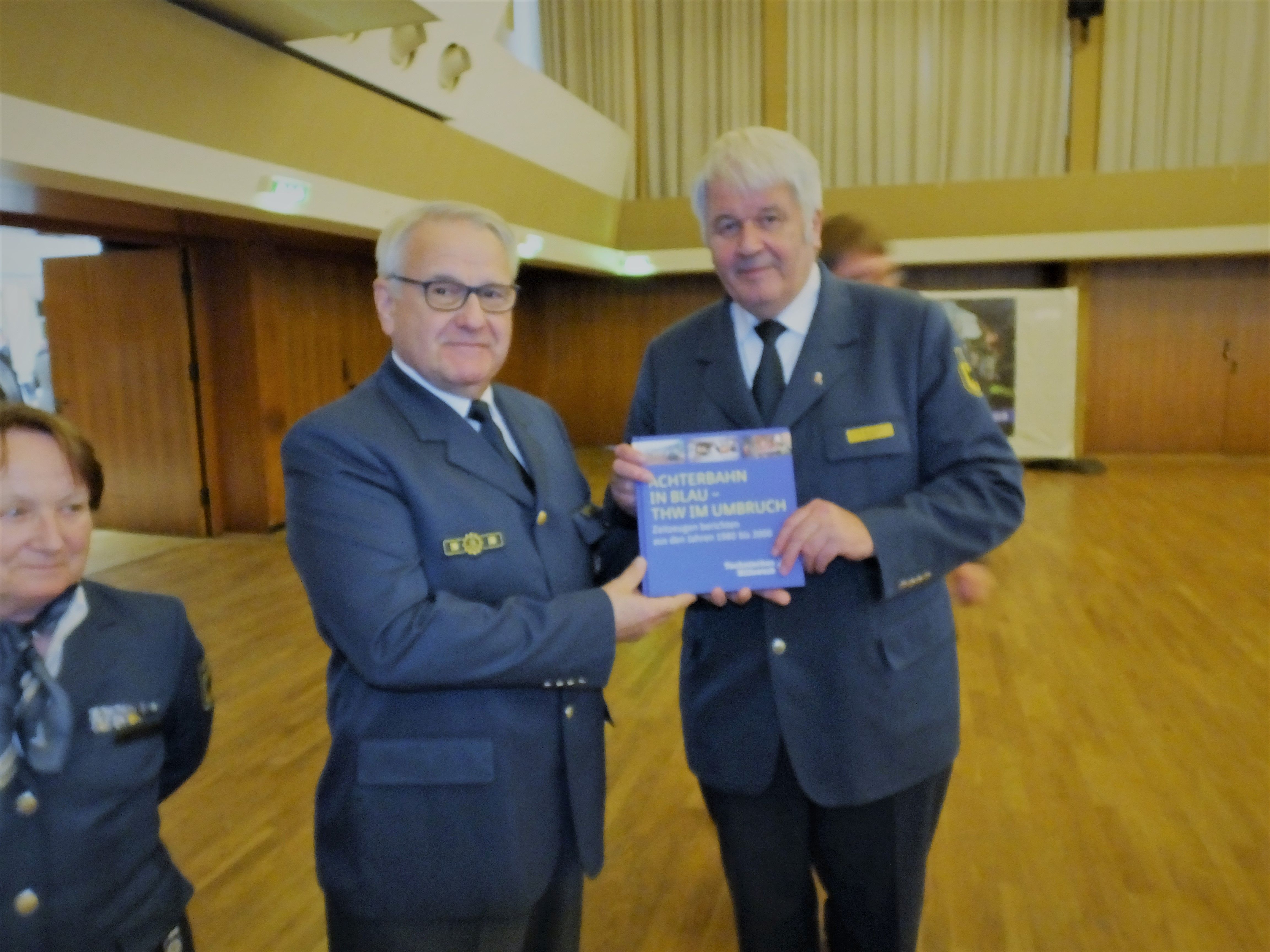 Neben der Verabschiedung wurde das gerade fertig gewordene Buch „Achterbahn in Blau – THW im Umbruch“ vorgestellt und an alle Anwesenden verteilt. In diesem Buch haben fünf Weggefährten des THW – Gerd-Jürgen Henkel, Dr. Johannes Gerster, Dr. Konrad Ammermüller, Frank Schulze und Paul Wilmes – über ihre Zeit beim THW von 1980 bis 2000 berichtet.