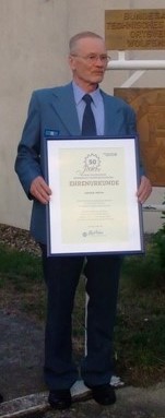 An Ehrungen hat er bekommen: Jahresurkunde 10 Jahre bis 50 Jahre, THW-Ehrenzeichen in Bronze, THW-Helferzeichen in Gold und in Gold mit Kranz.