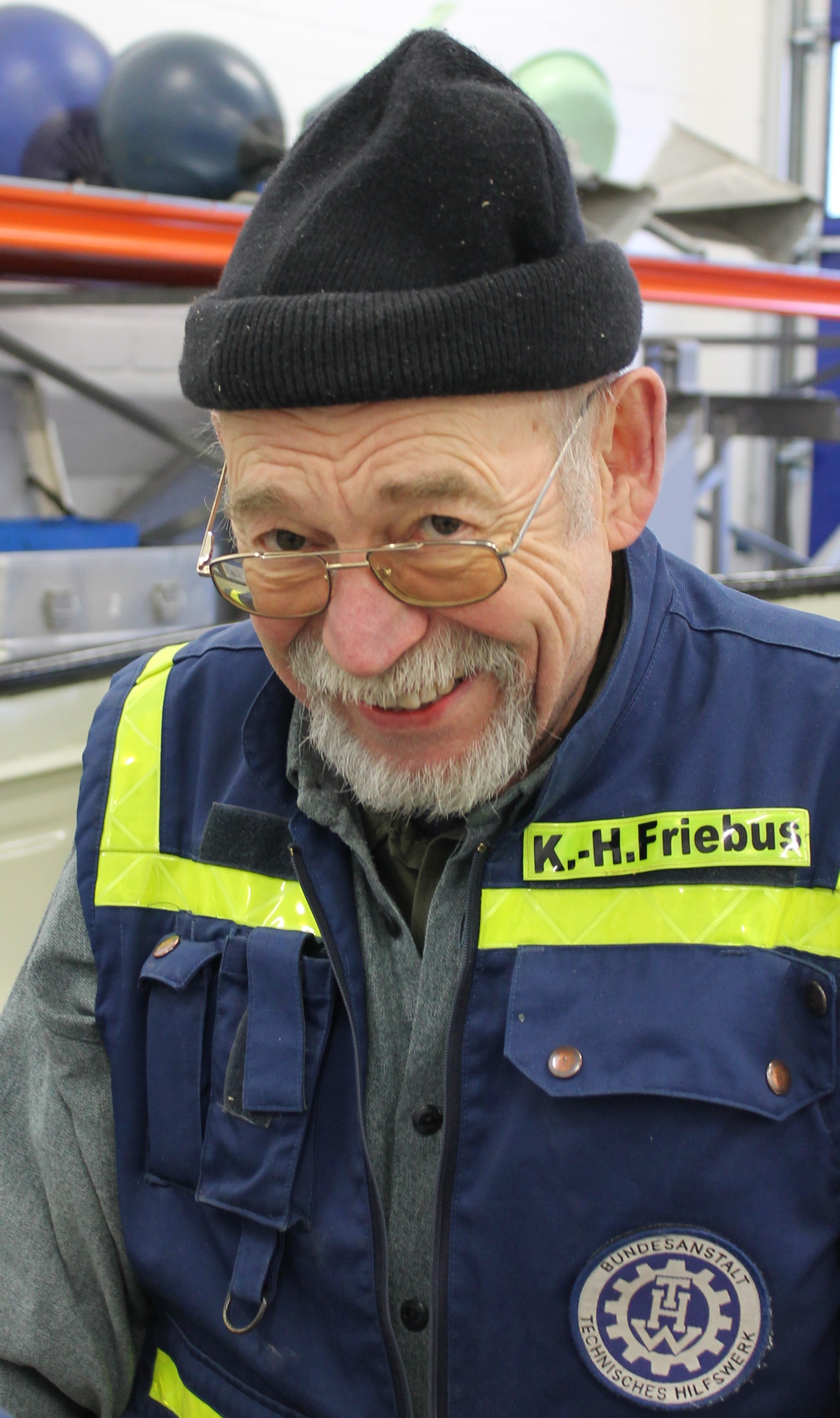 Karl-Hans Friebus ist am 26. September 1968 in das THW eingetreten. Im Laufe seiner Zeit als Helfer war er Behelfsbrückenbau-Leiter, er war mehrere Jahre Zugführer des Bergungs-, Instandsetzungs- und Technischen Zuges. Er war Ausbilder und Prüfer Grundausbildung im THW, außerdem Sachgebietsleiter und Leiter der THW-Führungsstelle.