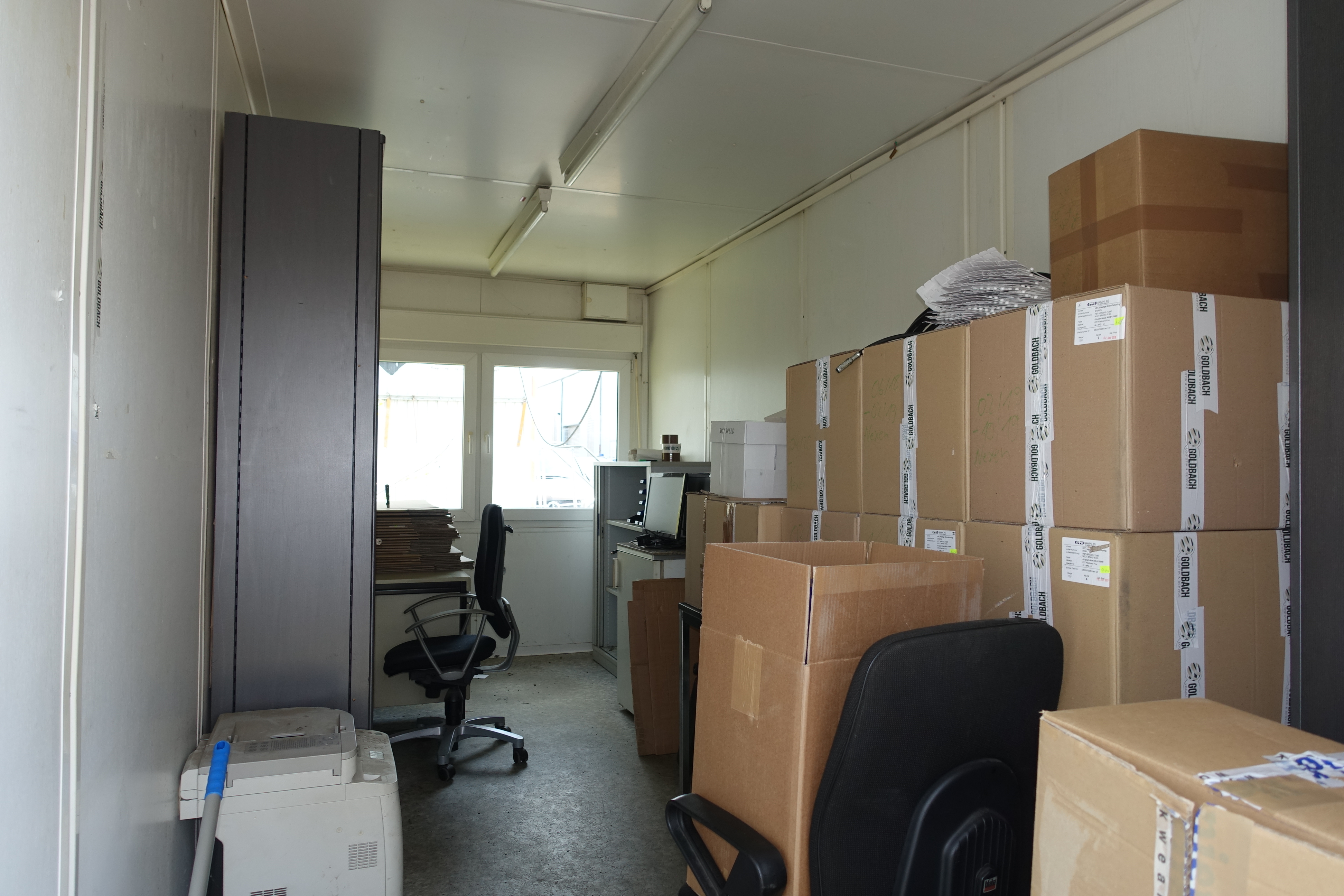 Der Bürocontainer muss vom Vermieter noch leergeräumt und danach von uns neu eingerichtet werden. Notwendige Büromöbel, wie Schreibtisch, Stühle, Schrank, bekommen wir ebenfalls vom Logistikzentrum zur Verfügung gestellt.