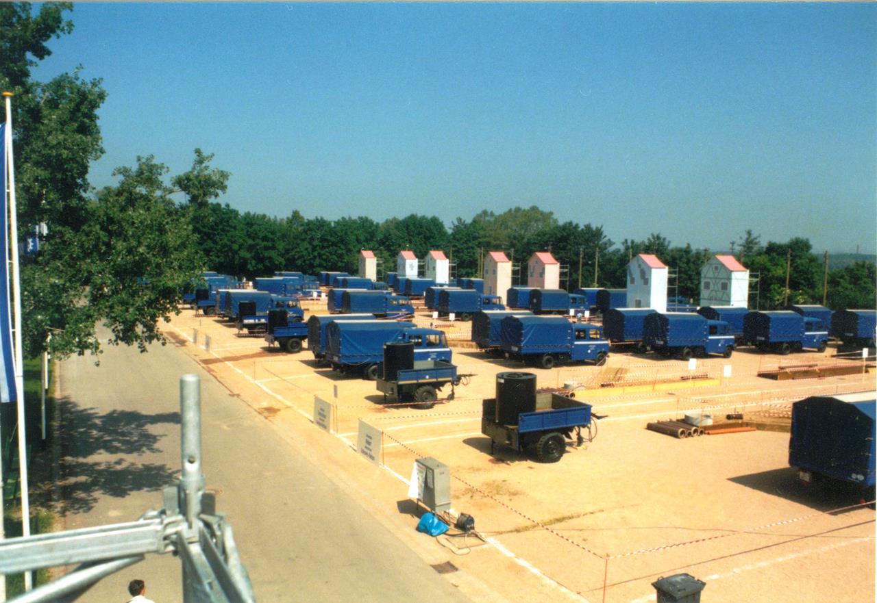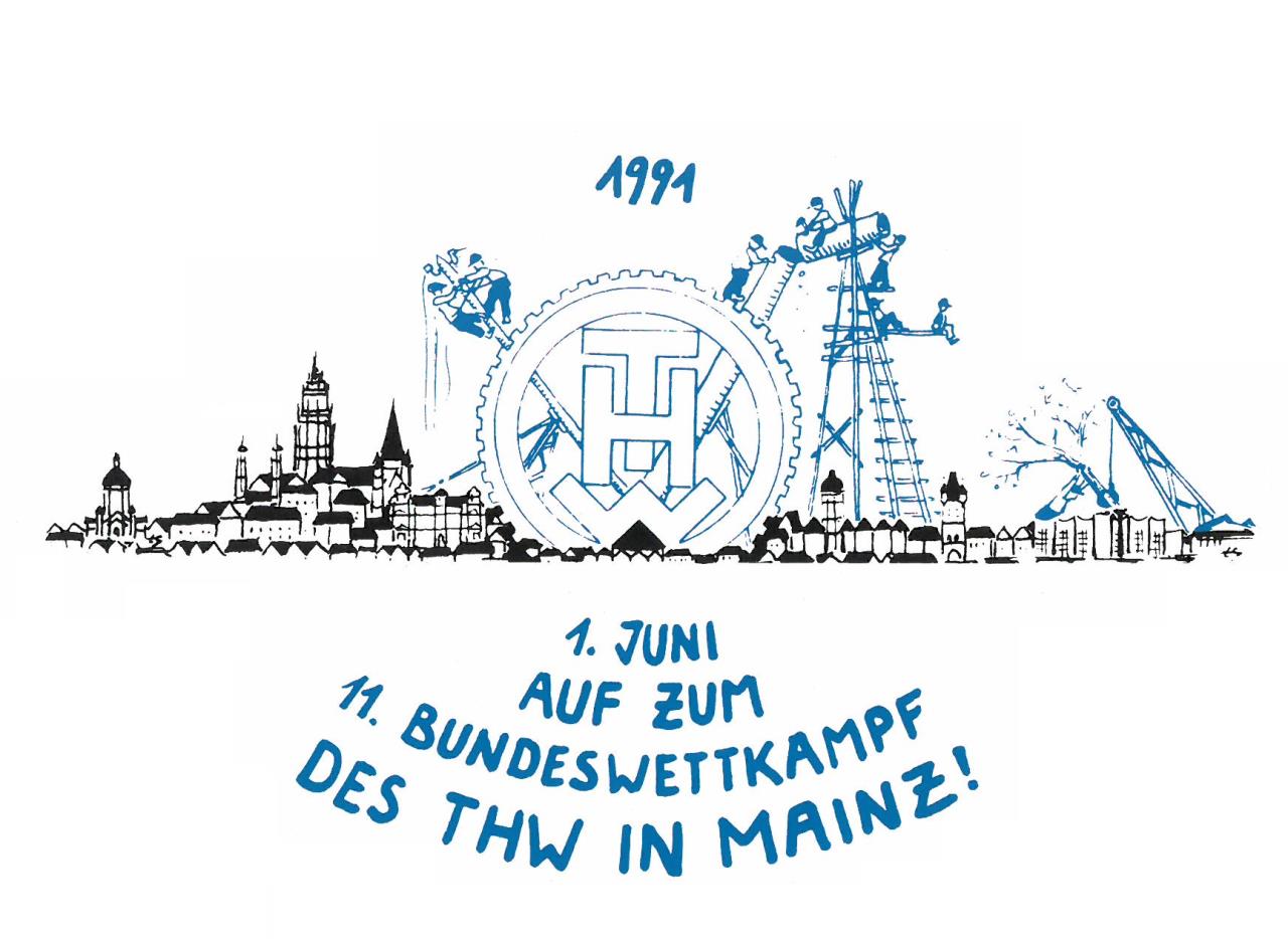 Alle zwei Jahre wurde der Bundeswettkampf des THW durchgeführt und am 01. Juni 1991 war der Instandsetzungsdienst an der Reihe. Im Mainzer Volkspark waren Zelte zur feldmäßigen Unterbringung, die Wettkampf-strecke und Info-Stationen für die Gäste aufgebaut.