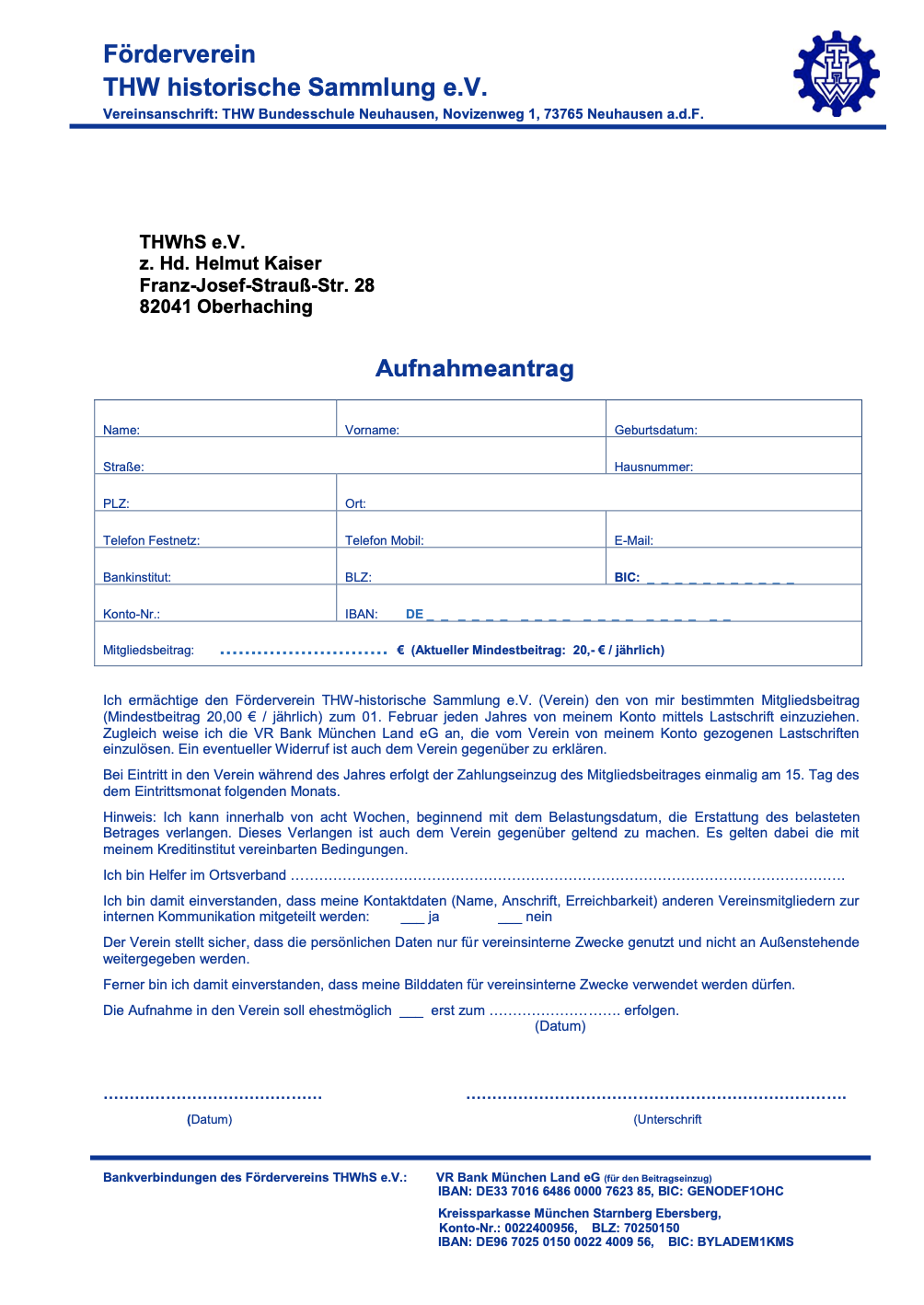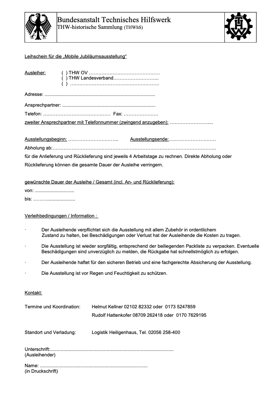 28 Juni 2010 Download Satzung Förderverein THWhS e.V. Leihschein Mobile Jubilaumsausstellung Aufnahmeantrag Förderverein