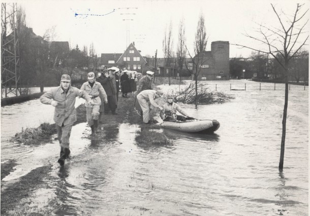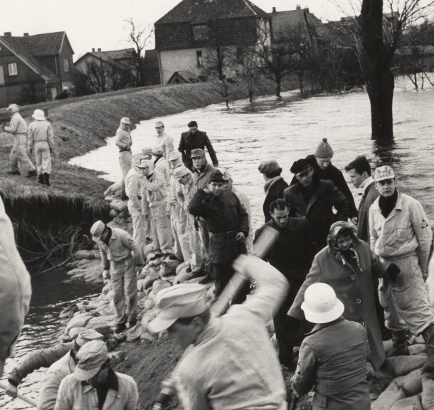 1960 und 1961 sind es wiederum Hochwassergefahren, die hunderte Helfer in die Einzugsbereiche von Weser und Ems führen. Wie schon 1958 waren vornehmlich Uferbefestigungsarbeiten durchführten und Vieh zu bergen.