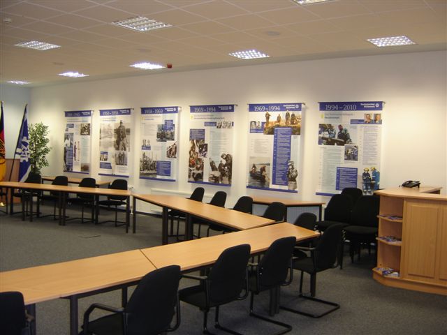 Das Team der THWhS dekorierte den Helmut-Kellner-Saal des Landesverbandes NRW und des THW-Logistikzentrums in Heiligenhaus mit einer verkleinerten Version der „Mobilen Jubiläumsausstellung“ zur THW-Geschichte. Die „Mobile Jubiläumsausstellung“ kann von allen THW-Ortsverbänden kostenlos für Veranstaltungen ausgeliehen werden. Weitere Informationen finden Sie unter der Rubrik „Mobile Jubiläumsausstellung“.