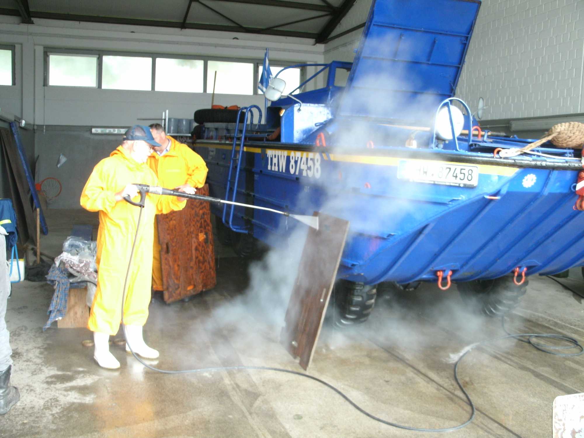 Beim Arbeitstreffen der THWhS Mitglieder wurden die Restaurierungsarbeiten an den Krupp-Pontons fortgesetzt, die Besucheraufstiege (Treppen) für Wasserfahrzeuge fertiggestellt, die Fahrwassertonne restauriert, Wartungsarbeiten am amphibischen Fahrzeug DuKw durchgeführt und Inventarlisten erstellt.