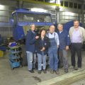 Für das zweite Arbeitstreffen in Neustadt a.d.W. hatten wir uns wieder viel vorgenommen. Die in Hoya vorbereiteten Kleinmaterialien für den AL 28 hatte Rudi Heppe grundiert, sie wurden zum Trocknen ausgelegt. Von den Kotflügeln wurde der Teer (Unterbodenschutz) mit Spachteln weggekratzt, was nicht so einfach war. Anschließend wurde der alte Lack mit der Schleifmaschine abgeschliffen. Bei dieser Arbeit musste zeitweise auch Mundschutz getragen werden. Scheinwerfer, Radkasten, Lampen,...