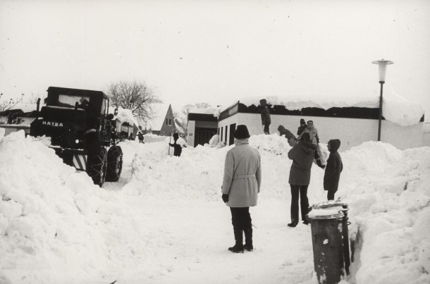 Das THW lotst ein Versorgungfahrzeug sicher durch die Schneeverwehungen zu seinem Bestimmungsort – Februar 1979